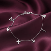 Elegant Silver Charm Thread Anklet with Black Dori & Cute Bird Drop