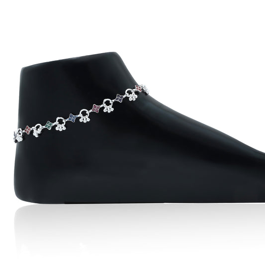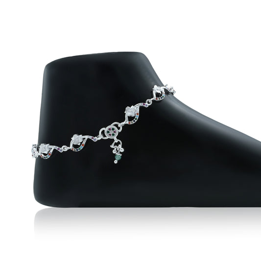 ₹8,575.00Silver Payal with Vibrant Multicolored Stones