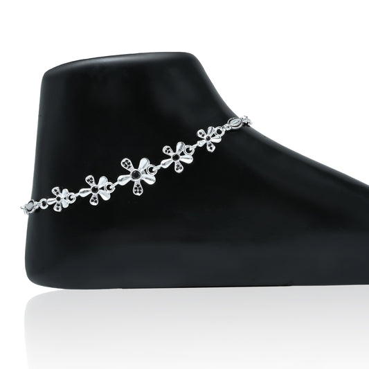 ₹6,376.00Elegant silver anklet with floral design and gemstones
