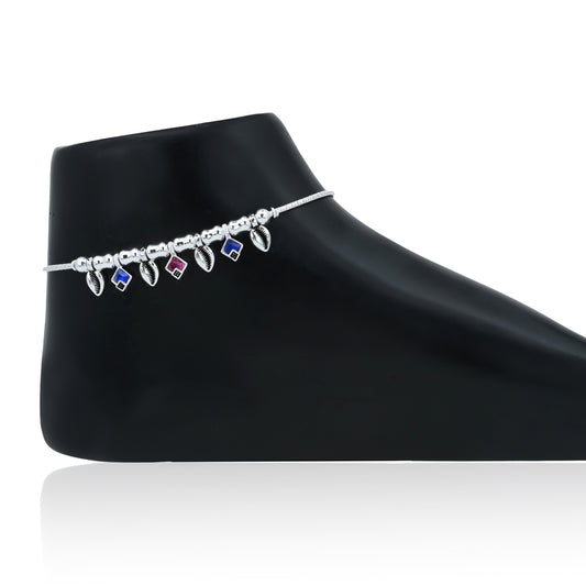 ₹11,999.00Silver Anklet Linked with Colorful Stones