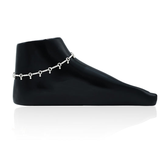 Silver Black Beaded Payal Minimal Traditional Anklet for Daily Wear