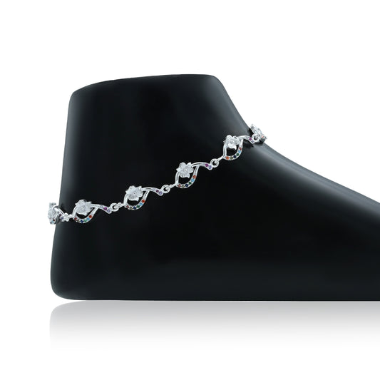 ₹7,304.00Premium Silver Anklet Flower Bud with Vibrant Stones