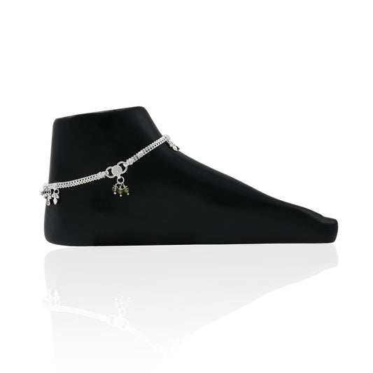 Silver Green Beaded Payal Minimal Traditional Anklet for Everyday Wear