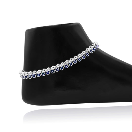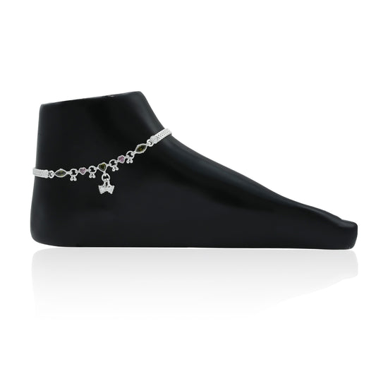₹8,765.00Silver Anklet with Eye-Shaped Stones and Bold Vibrant Link Design