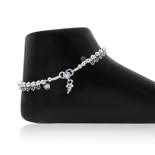 Silver Black Beads Daily Wear Anklet