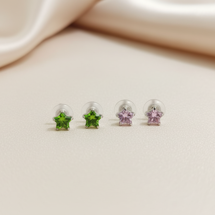 (2 Pcs Combo) Color Your Spark Star Stones Unisex Silver Earrings in Vibrant lung