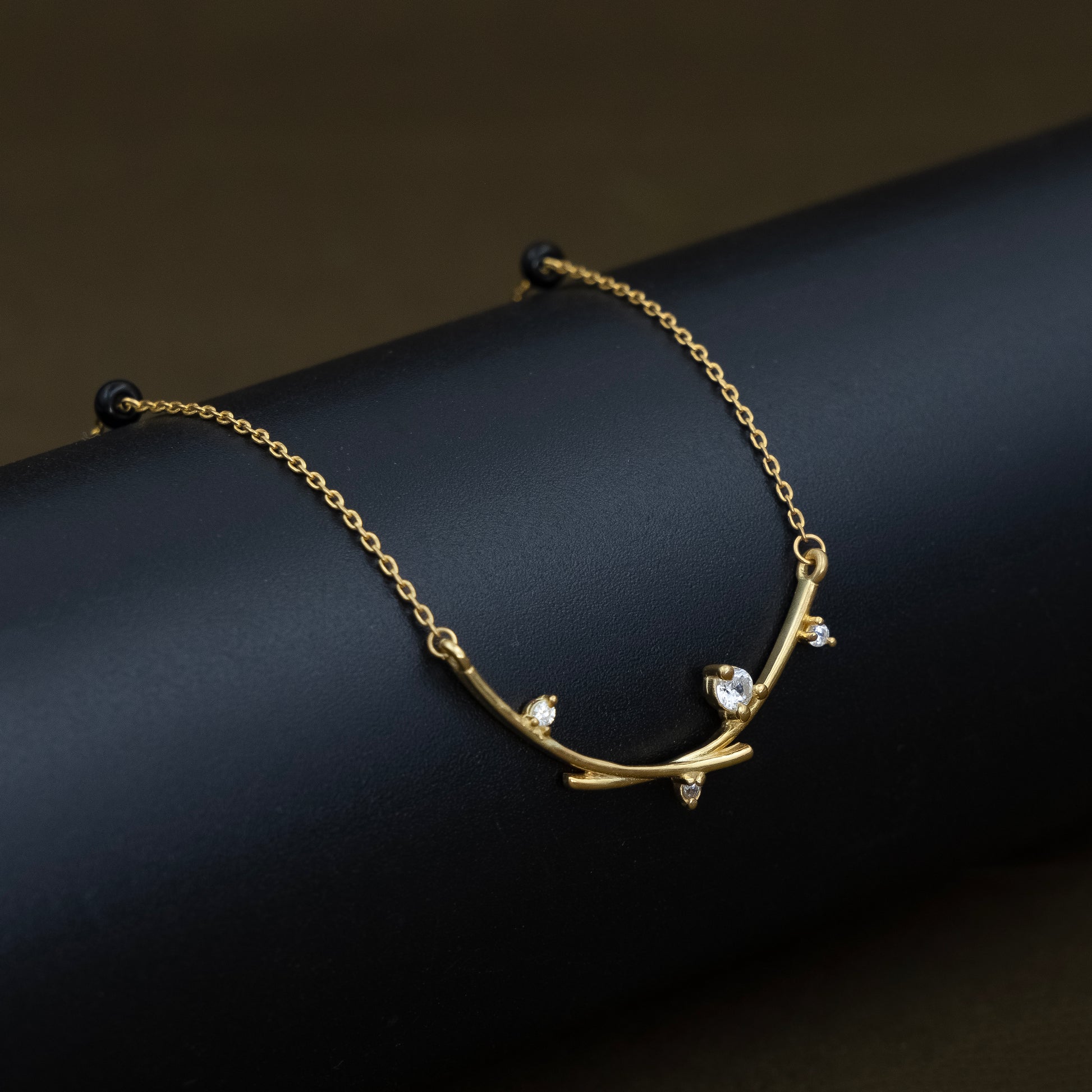 This modern silver mangalsutra features sparkling cubic zirconia accents, adding a refined touch to a timeless symbol of commitment. Crafted with precision, it is available in elegant gold, romantic rose gold, and classic silver polish finishes to suit diverse tastes. Designed for everyday wear, this piece combines traditional significance with contemporary style, ensuring both durability and sophistication. Elevate your collection with a mangalsutra that harmonizes heritage and modern craftsmanship.