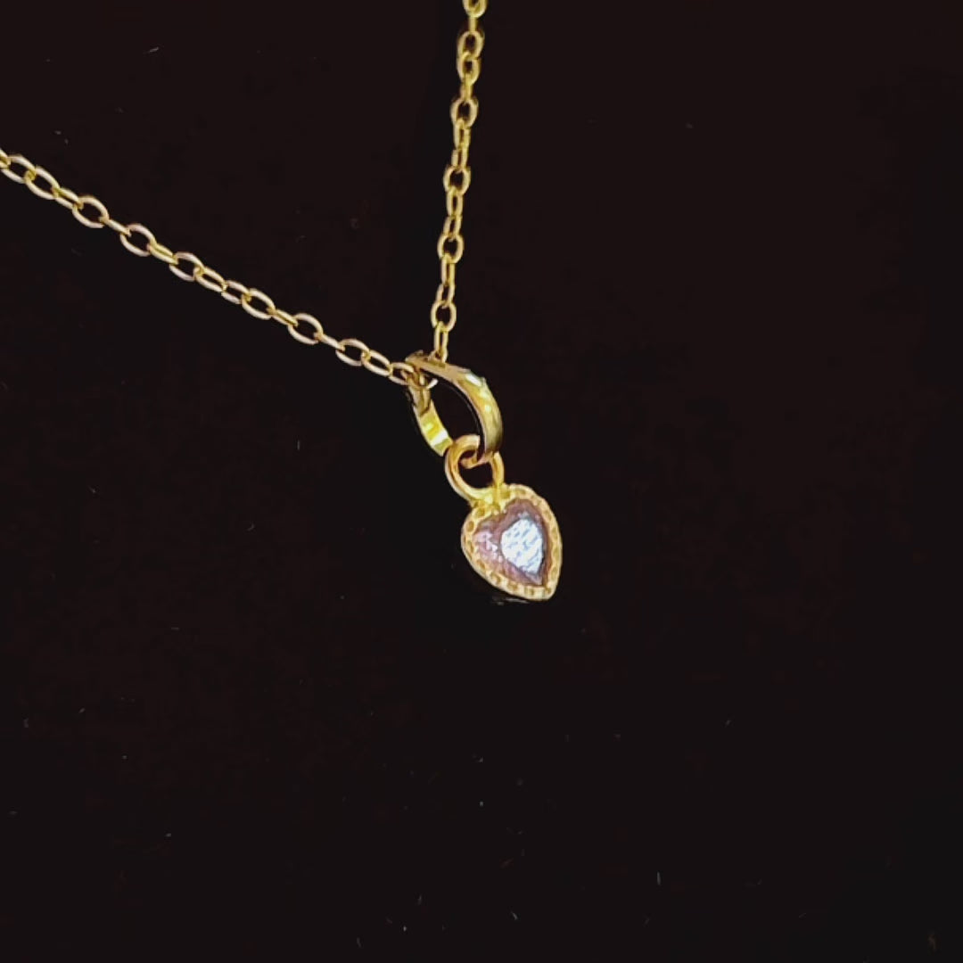 Premium Heart-Shaped Stone Gold Polish Silver Pendent Necklace