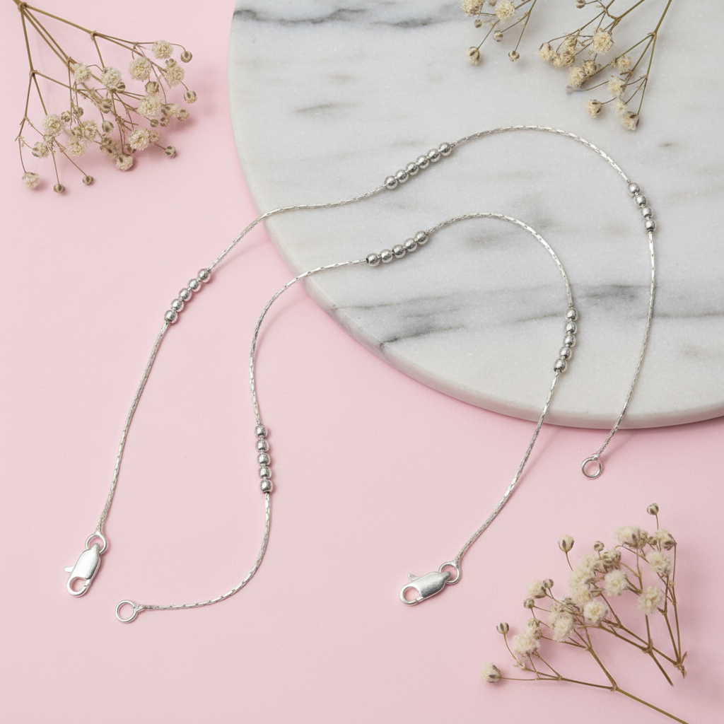 Pure Silver Bead Flow Chain Lightweight Modern Indian Anklet