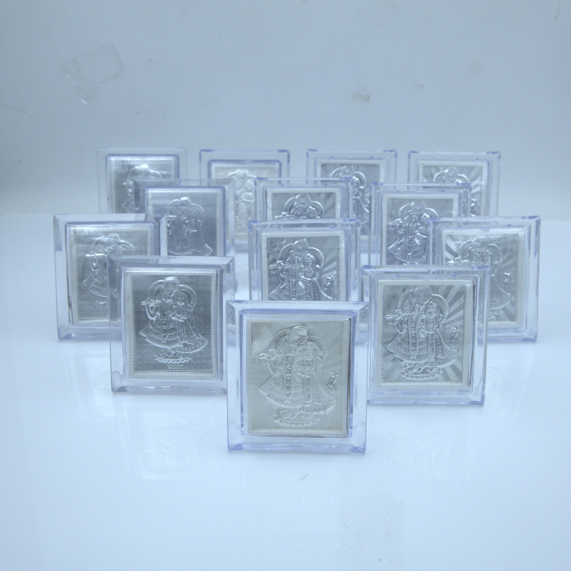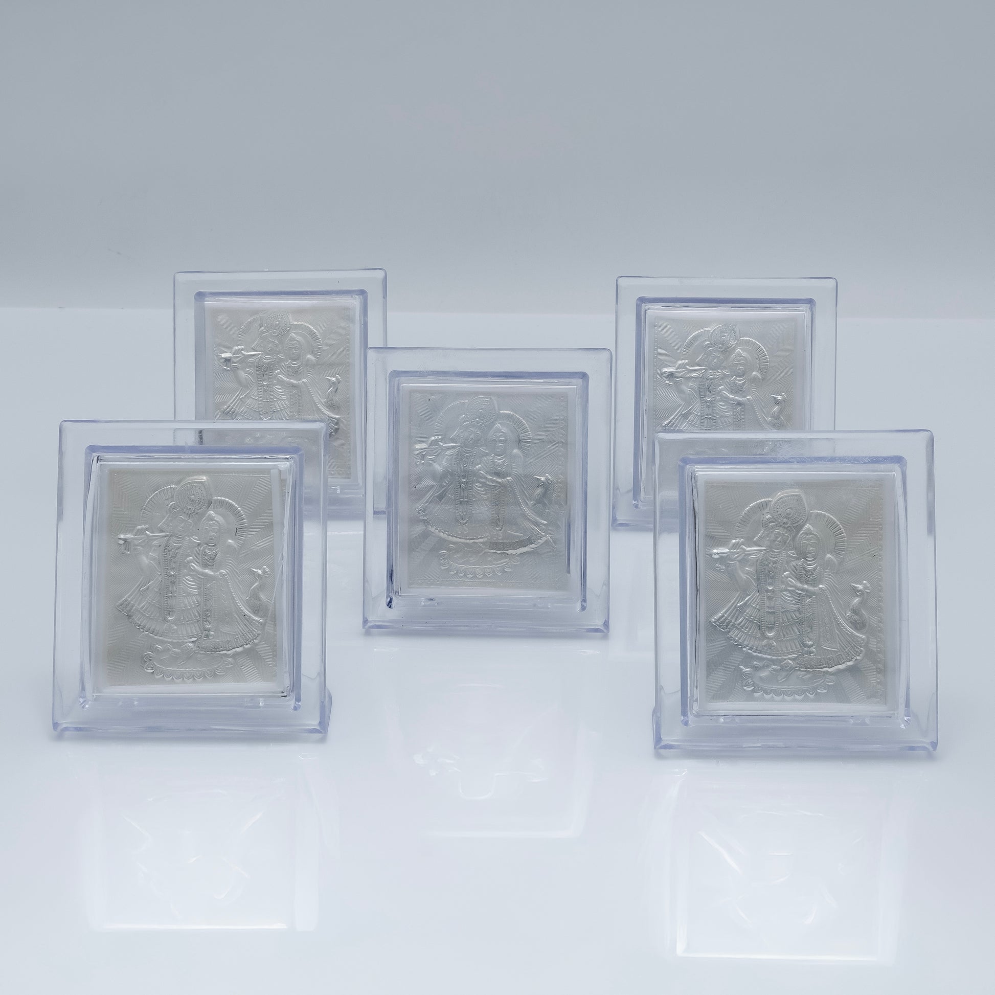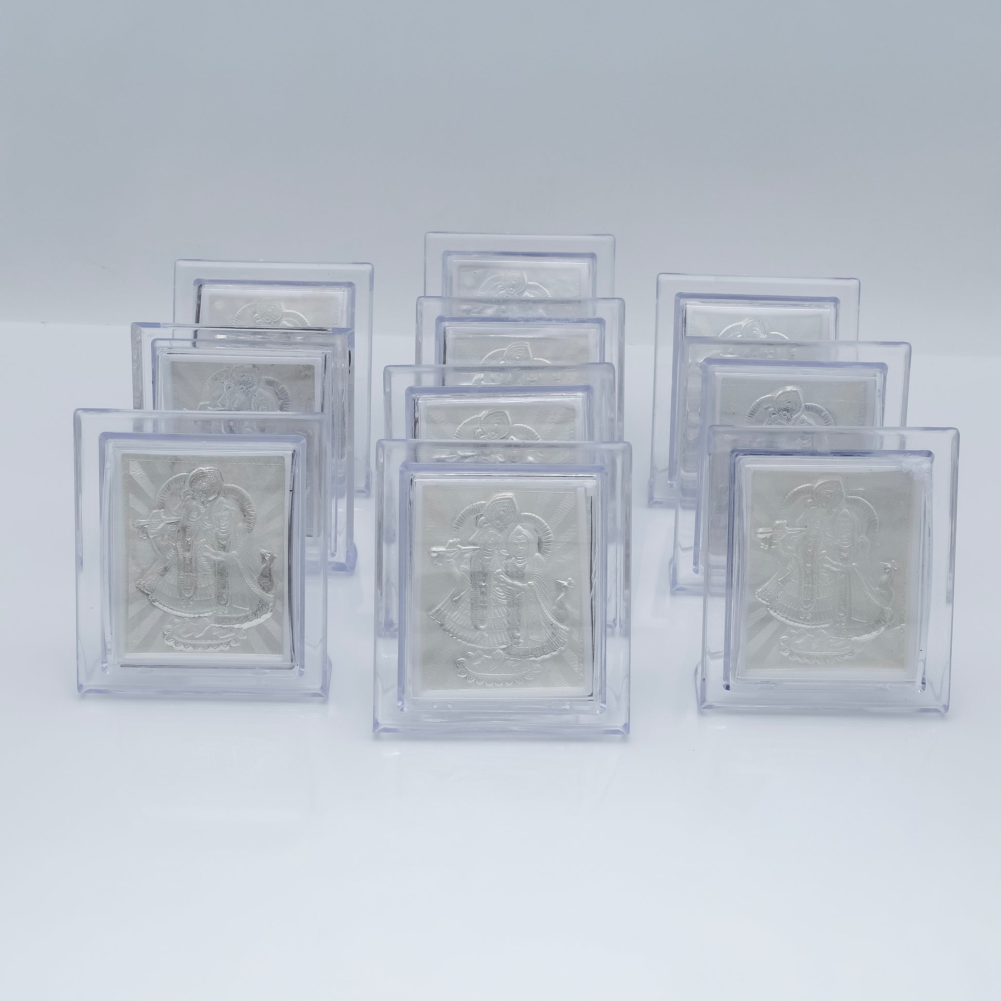 Celebrate divine love with the Radha Ji Krishna Ji Silver Frame, exquisitely crafted to capture the eternal bond of Prem. This finely detailed silver frame showcases the revered deities Radha and Krishna, symbolizing devotion and spiritual harmony. Perfect for enhancing your sacred space, it serves as a timeless reminder of love’s purity and grace. Ideal for gifting or personal worship, this frame blends artistry with spiritual significance, making it a cherished addition to any collection.