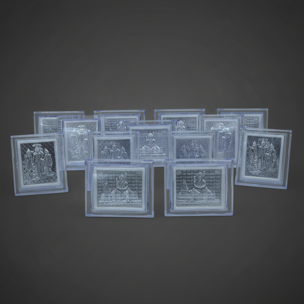The Shri Ram Darbar Silver Frame beautifully captures the revered image of Lord Ram, Sita, Lakshman, and Hanuman in a finely crafted silver setting. This frame combines traditional artistry with durable silver material, making it a distinguished piece for devotional spaces. Its expert craftsmanship ensures lasting elegance, perfect for enhancing your home altar or gifting to loved ones who appreciate spiritual heritage.