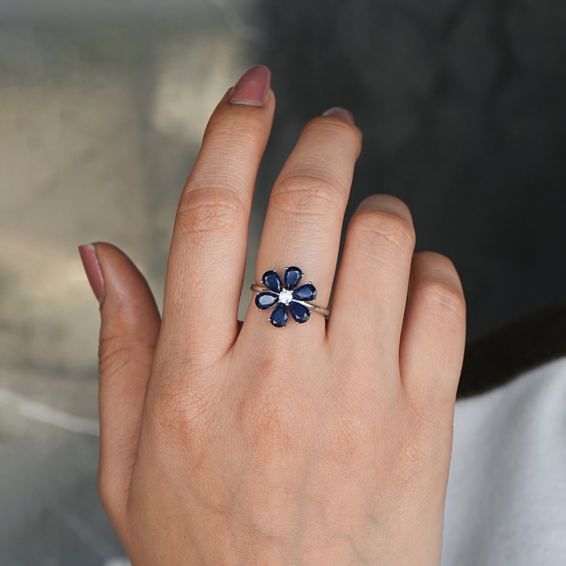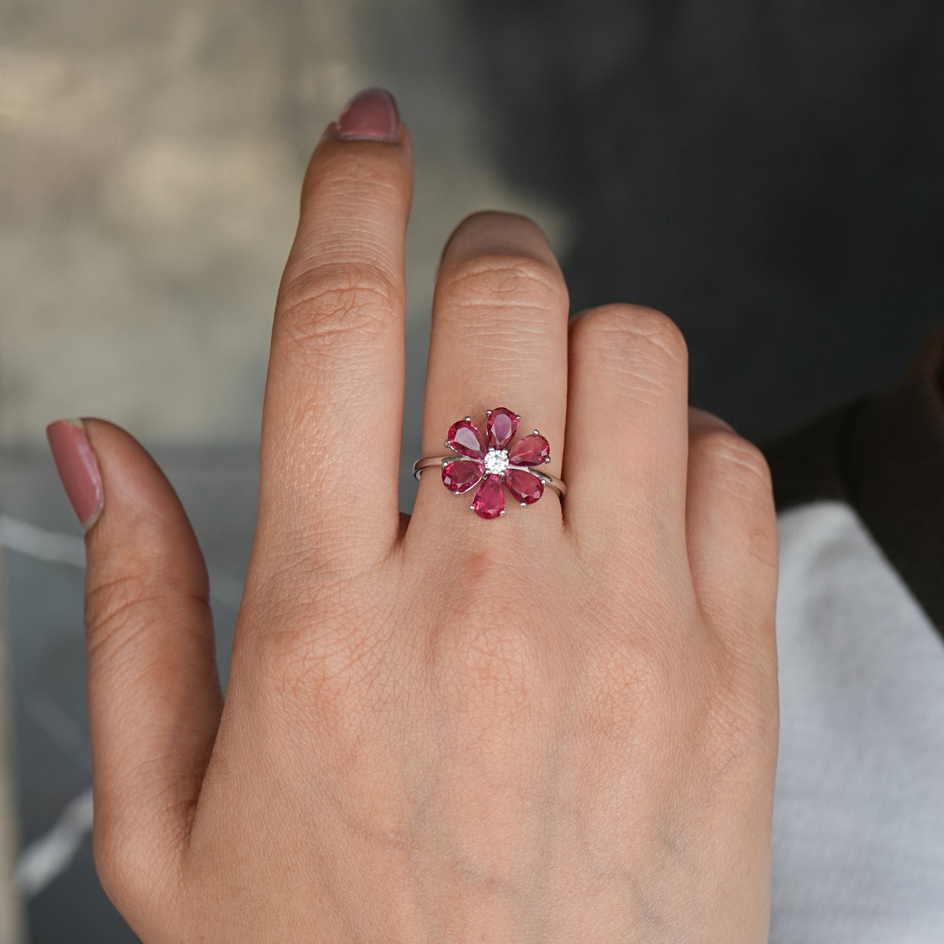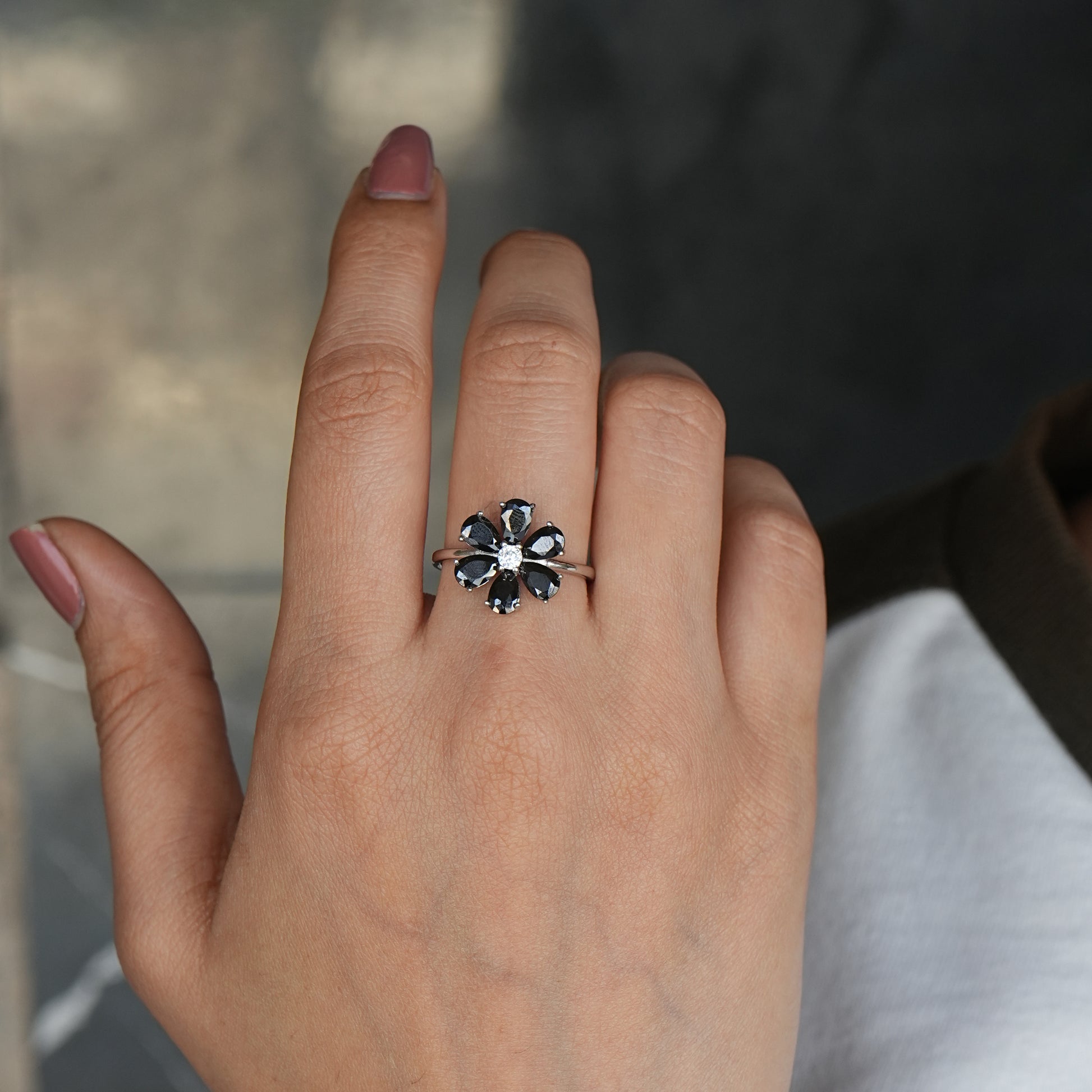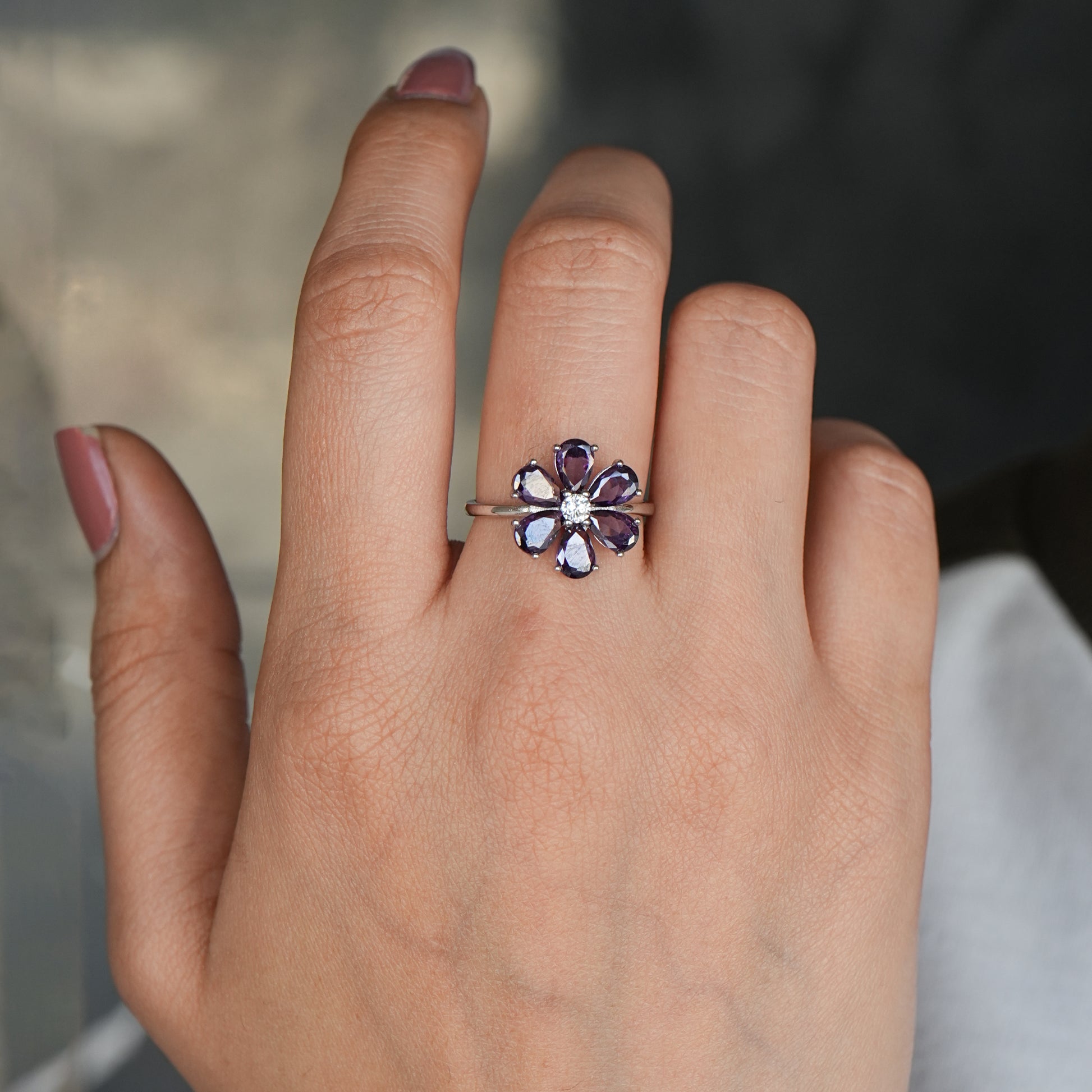 Silver Blossom Ring with Assorted Gemstone Accents
