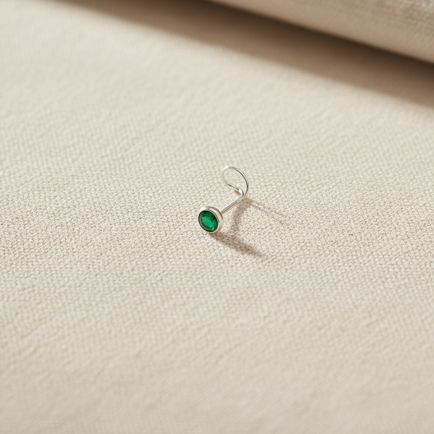 This silver nose pin features a delicate design adorned with round multicolour stones, adding a subtle yet vibrant touch to your look. Crafted from high-quality silver, it ensures durability and a comfortable fit. Its versatile style complements both traditional and contemporary outfits, making it an expert choice for those seeking elegance with a splash of colour.