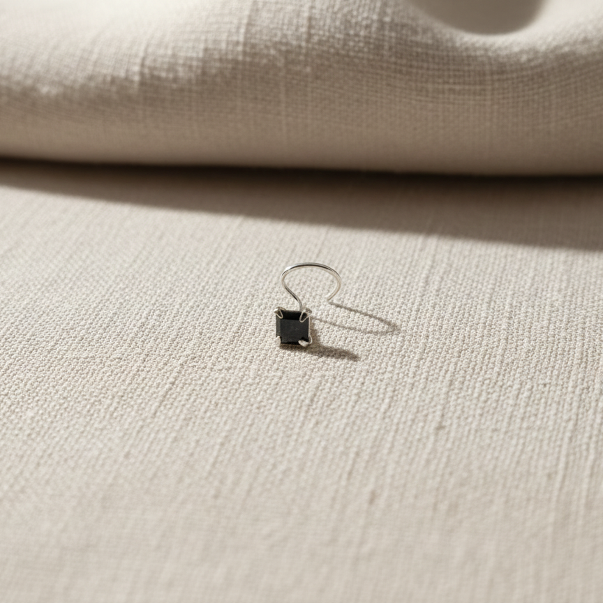 Crafted from high-quality silver, this nose pin features a distinctive square design adorned with vibrant multicolour stones. Its precise setting ensures durability while adding a touch of elegance and colour to your look. Ideal for those seeking a subtle yet sophisticated accessory, this piece complements both traditional and contemporary styles.