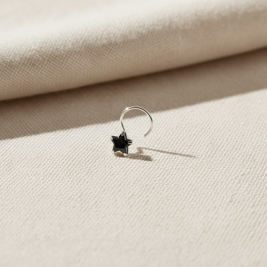 Crafted from high-quality silver, this nose pin features a delicate star design adorned with vibrant multicolour stones. Its expert craftsmanship ensures durability while adding a subtle yet striking accent to your look. Ideal for those seeking a refined accessory that blends traditional charm with contemporary style.