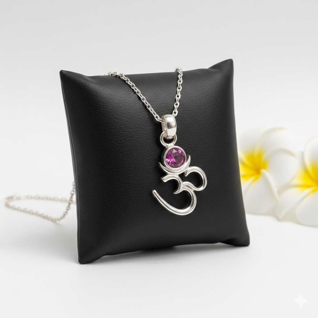 Crafted from high-quality silver, the Om Chand Pendant with Chain exemplifies timeless spiritual elegance. The pendant features the sacred Om symbol alongside a subtle moon motif, symbolizing harmony and tranquillity. Accompanied by a matching silver chain, this piece offers both durability and comfort for everyday wear. Ideal for those who appreciate meaningful jewellery, it combines traditional symbolism with expert craftsmanship to elevate any collection.