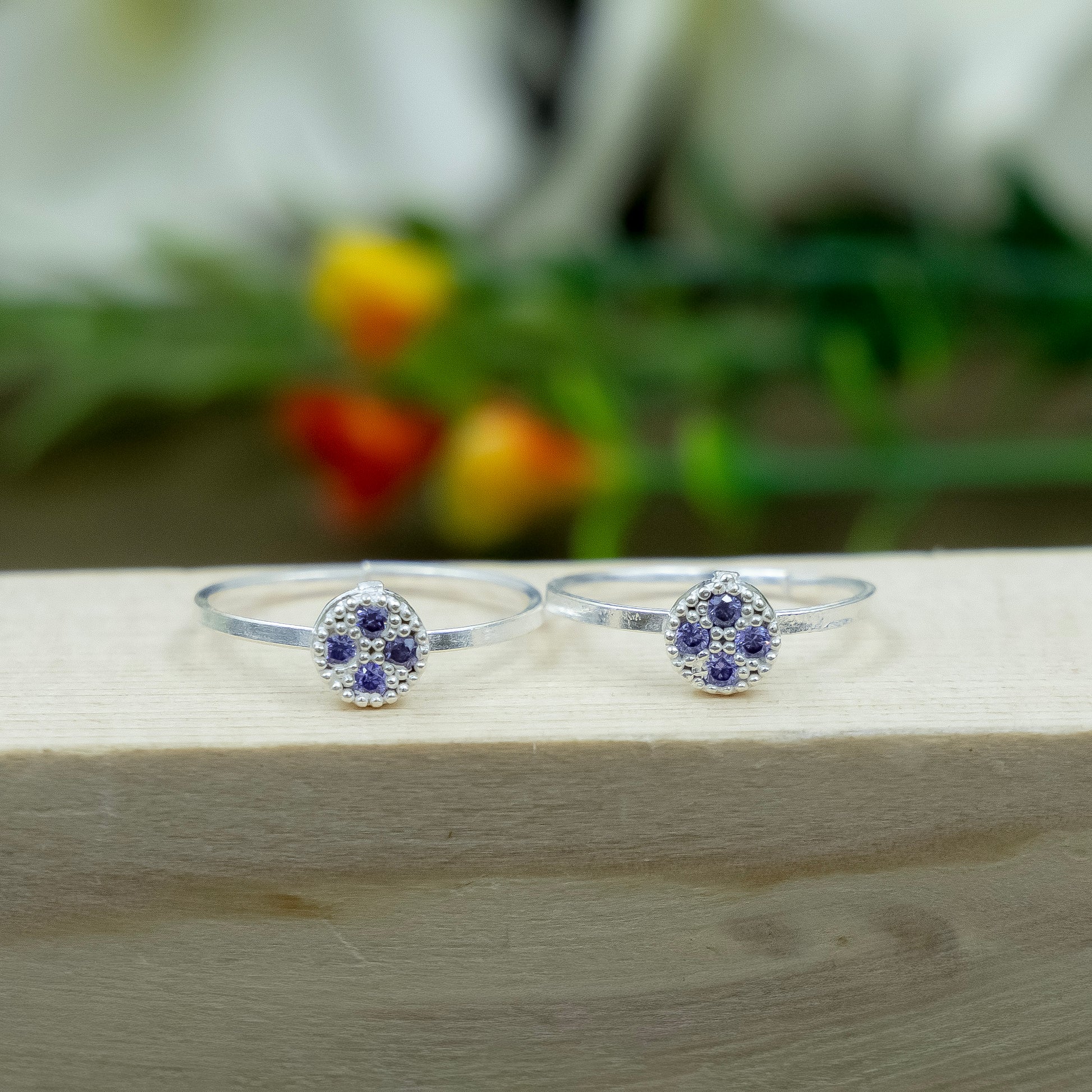 Silver Toe Rings Adjustable Floral Stone