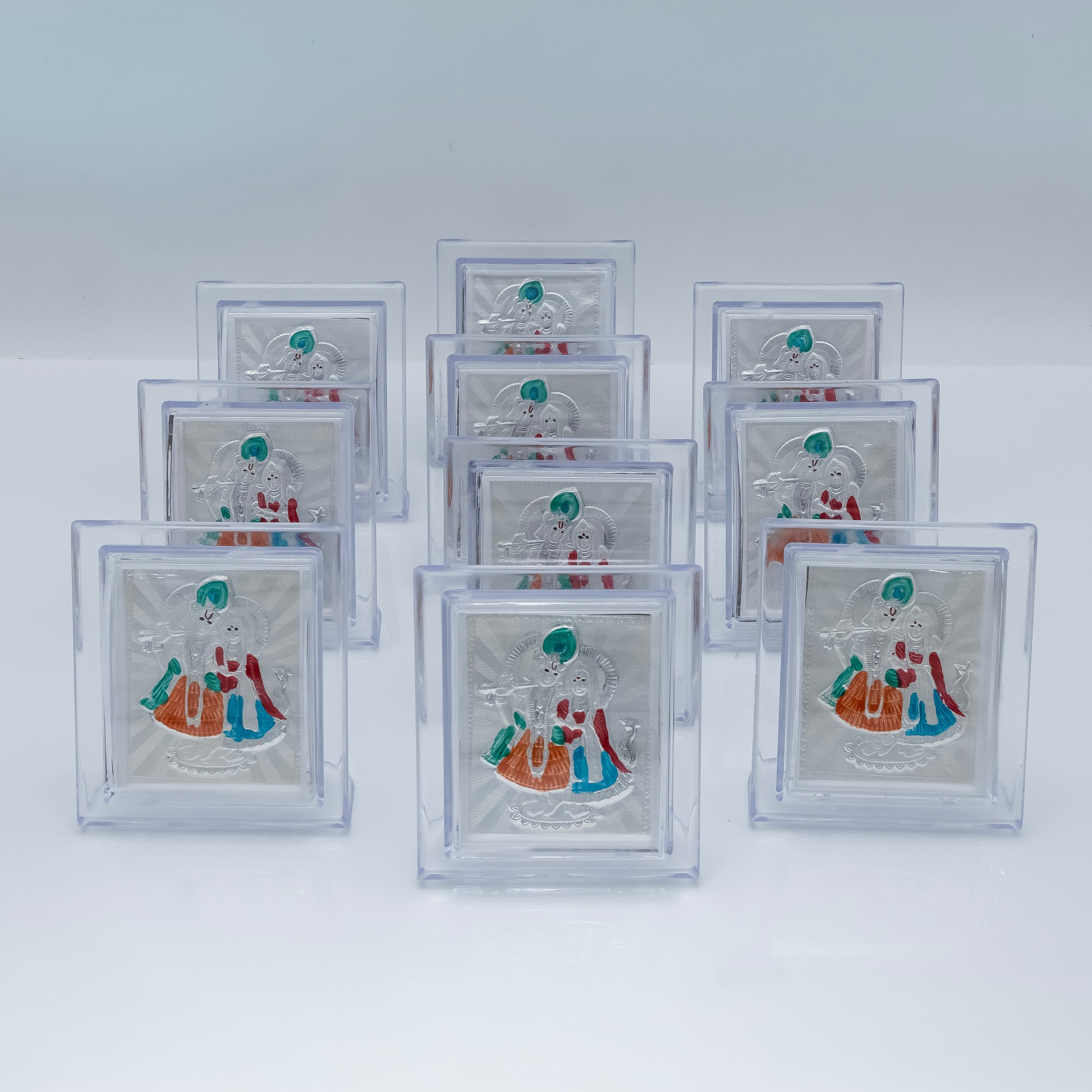 Celebrate divine love with the Soulful Silver Frame Radha Krishna Ji. Crafted with precision, this elegant silver frame beautifully captures the timeless bond of Radha and Krishna, making it a perfect spiritual centrepiece for your home or office. Its refined design enhances any decor while serving as a symbol of devotion and harmony. Ideal for those who appreciate artistry and spirituality combined in a single exquisite piece.