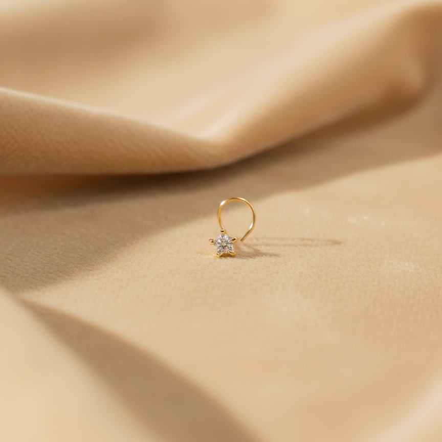This exquisite 1 Carat Gold Nose Pin is adorned with a star design featuring vibrant multicolour stones. Crafted with precision, it adds a subtle elegance to any look while showcasing expert craftsmanship. Perfectly sized for comfort, this nose pin combines tradition with a contemporary flair, making it a refined choice for daily wear or special occasions.