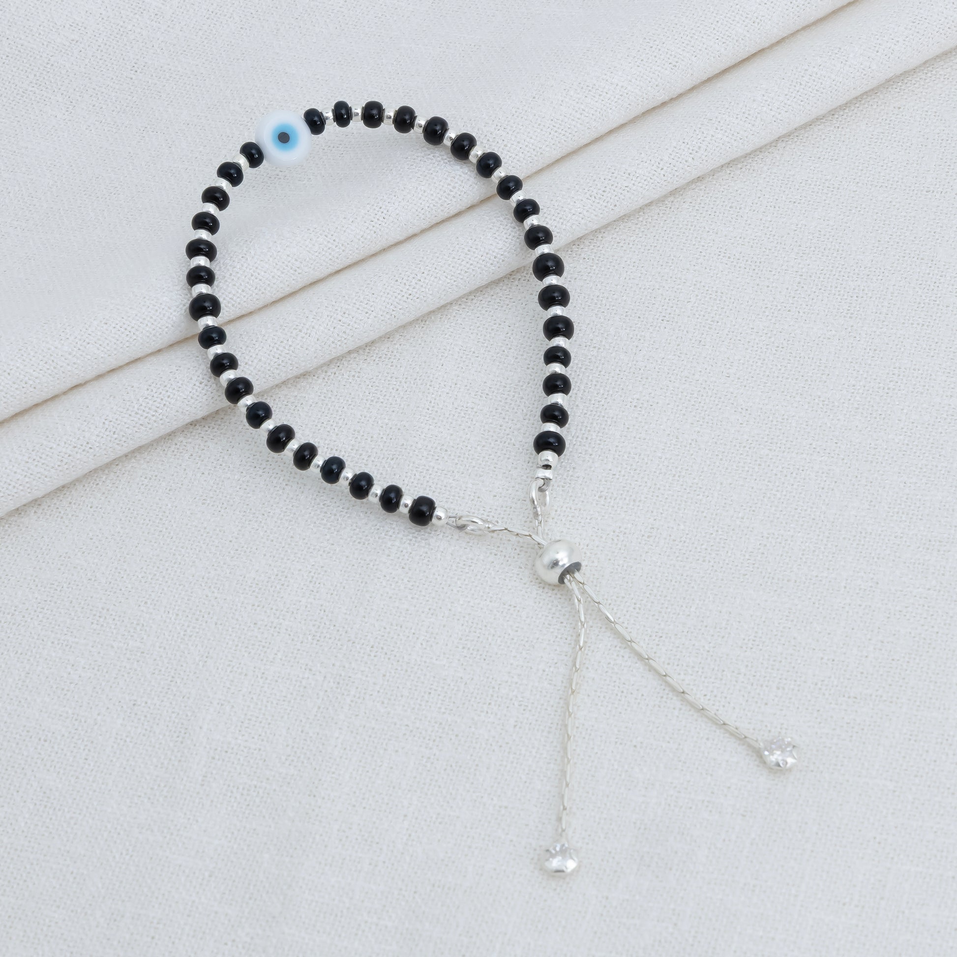 Crafted with precision, this Adjustable Black Beads Silver Chain Bracelet combines durable silver with sleek black beads for a refined accessory. Its adjustable design ensures a perfect fit, offering both comfort and versatility. Ideal for adding a subtle yet sophisticated touch to any ensemble.