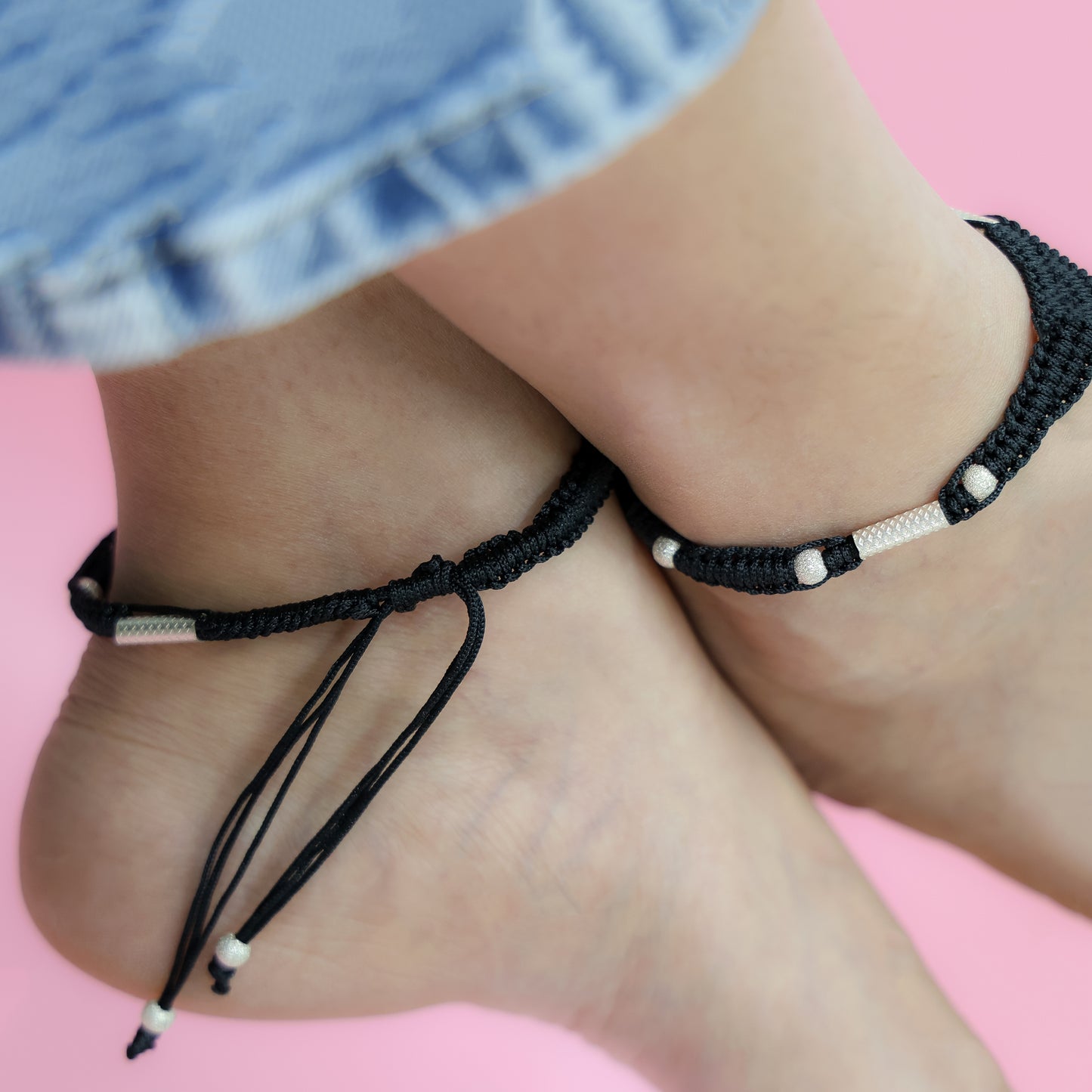 This adjustable silver thread anklet combines elegance with versatility, allowing a perfect fit for any ankle size. Crafted with durable silver thread, it offers both subtle shine and lasting comfort. Ideal for daily wear or special occasions, this anklet enhances your style with a refined, minimalist touch.