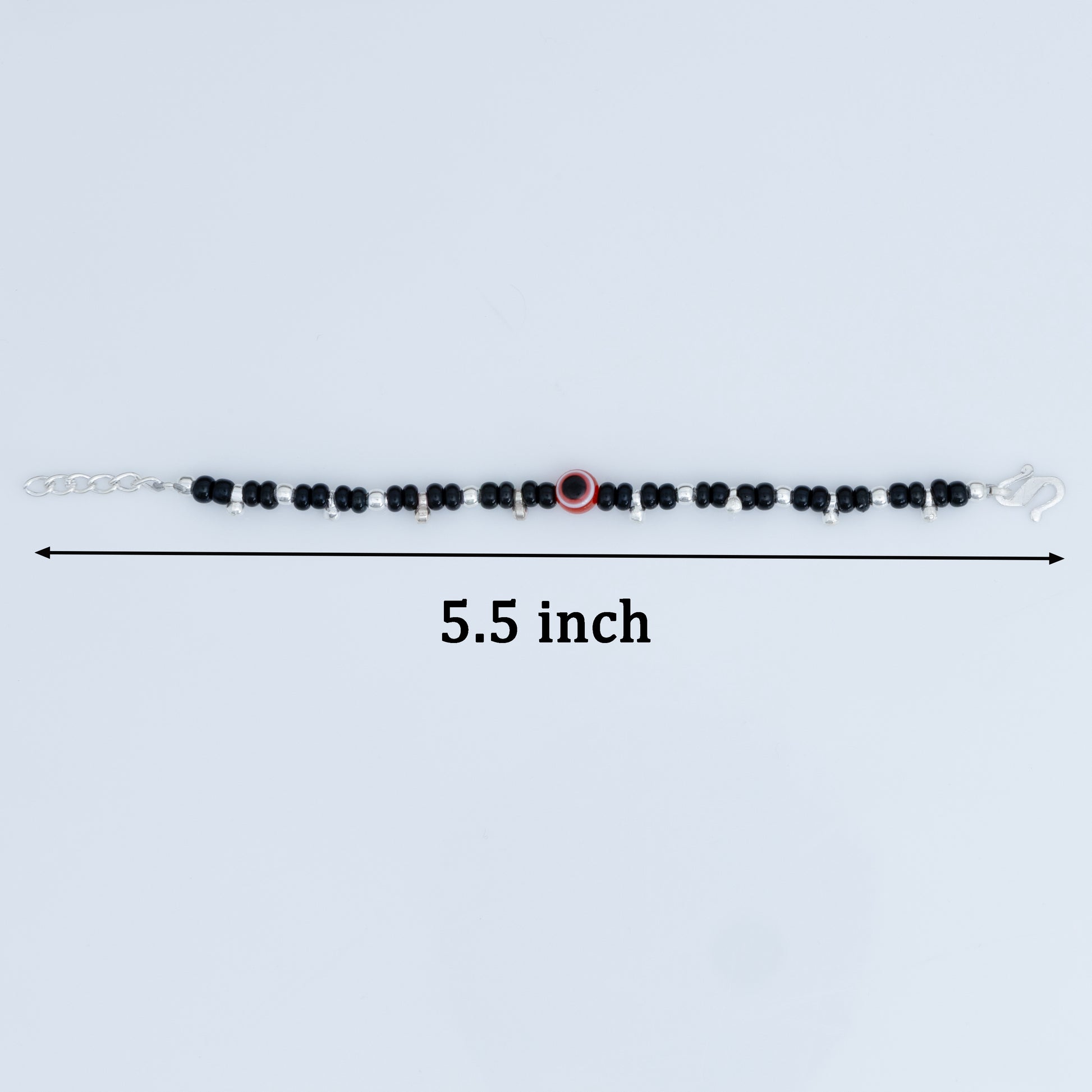 Black Beads & Red Evil Eye Silver Baby Bracelet