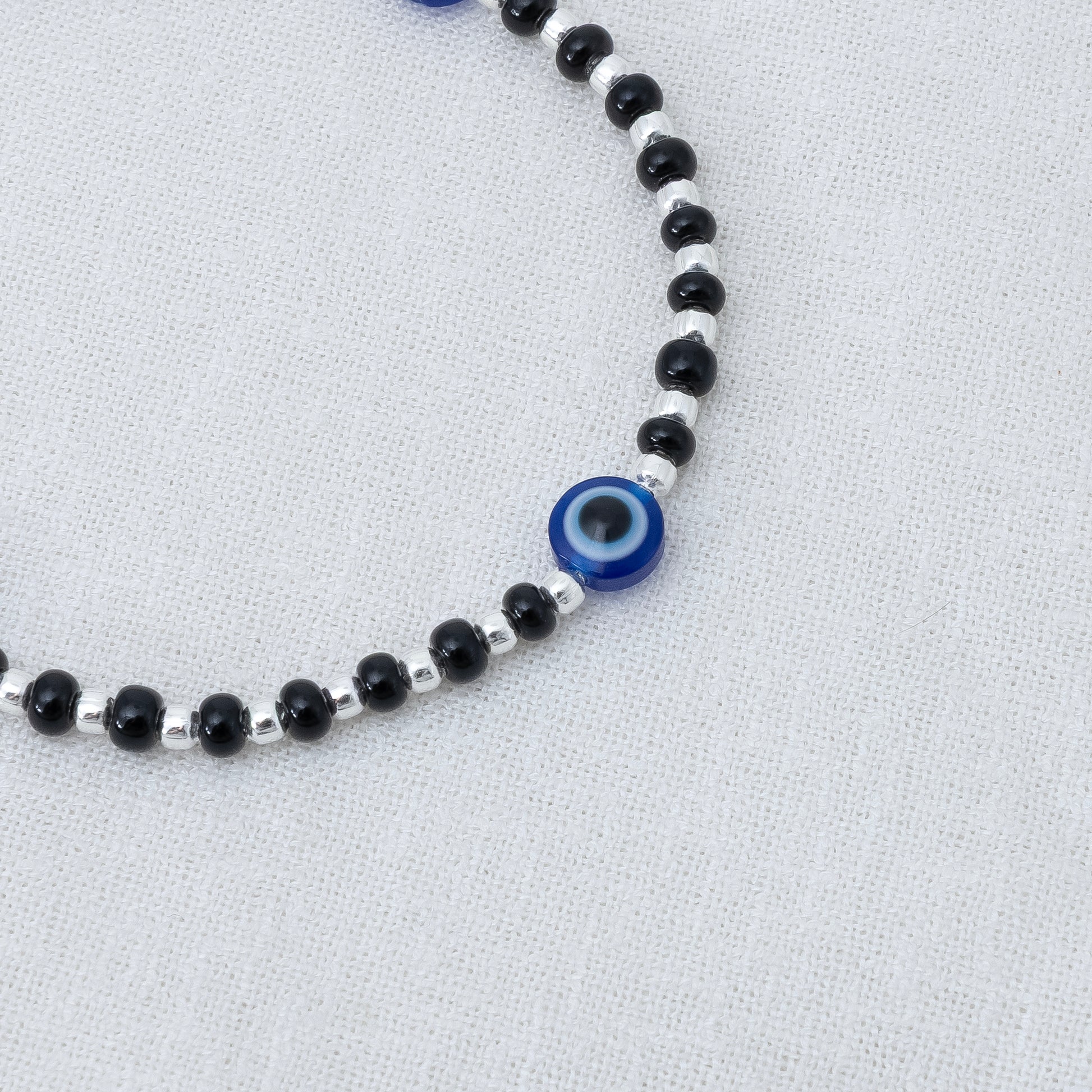 This Blue Aura Evil Eye Silver Anklet combines traditional symbolism with refined craftsmanship. Made from high-quality silver, it features a striking blue aura evil eye charm designed to offer protection against negative energies. Its delicate yet durable design ensures comfort and longevity, making it a sophisticated accessory that complements both casual and formal attire while serving as a meaningful talisman.