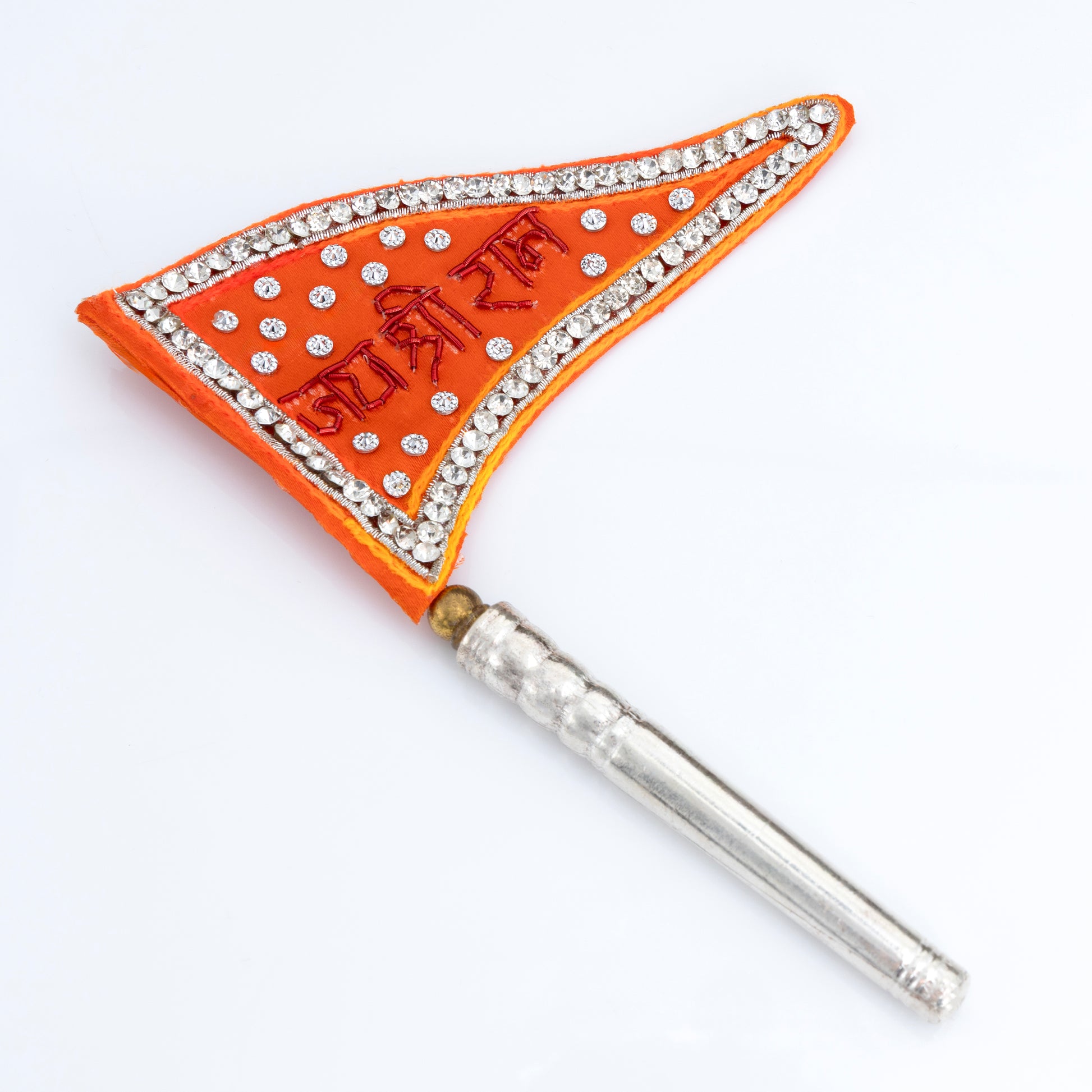 Bright Orange ‘Jai Shri Ram’ Silver dhwaja with Crystal Design