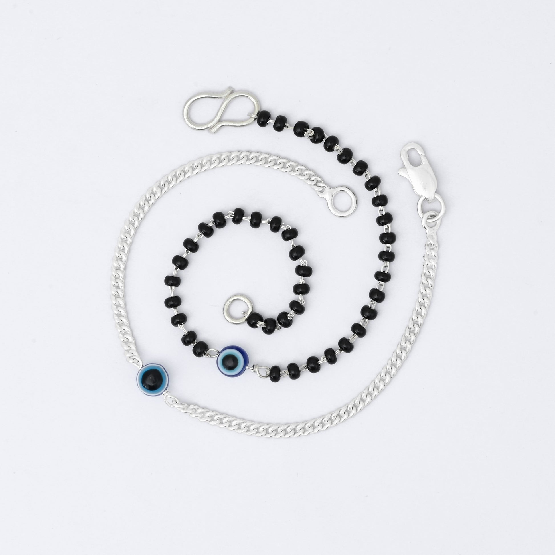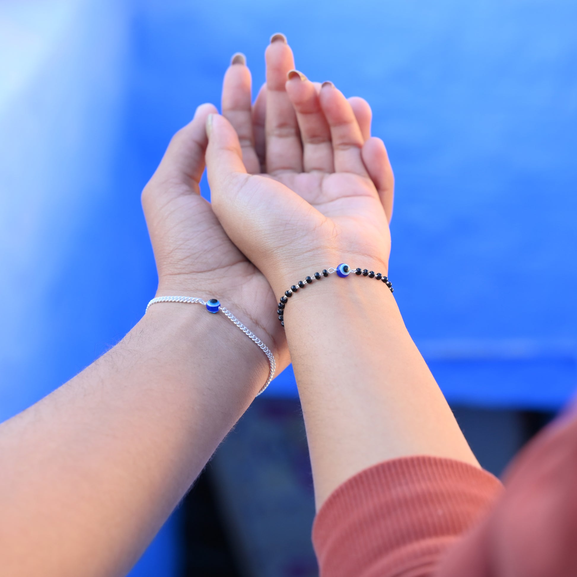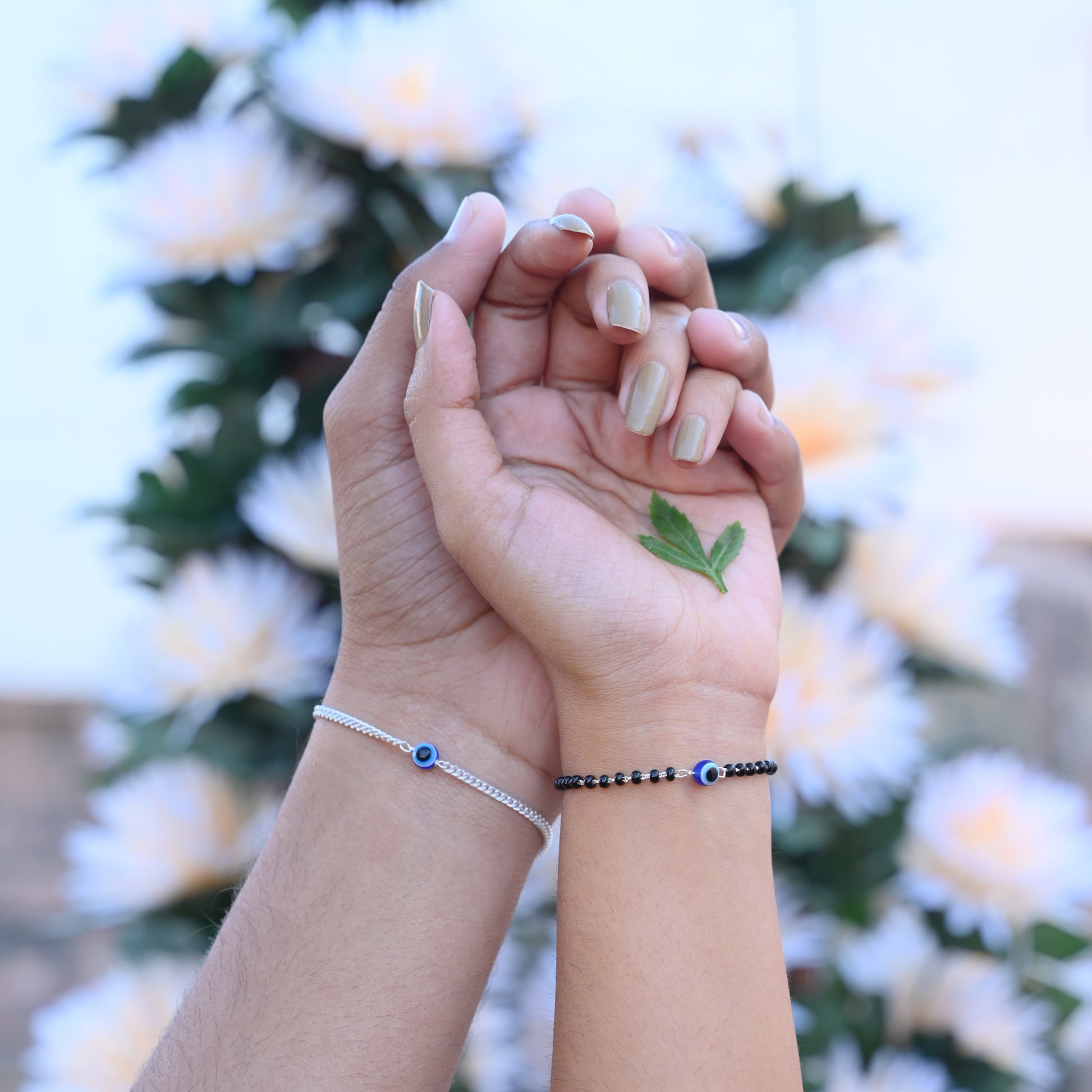Couple Evil Eye Bracelets Silver Chain & Black Beads
