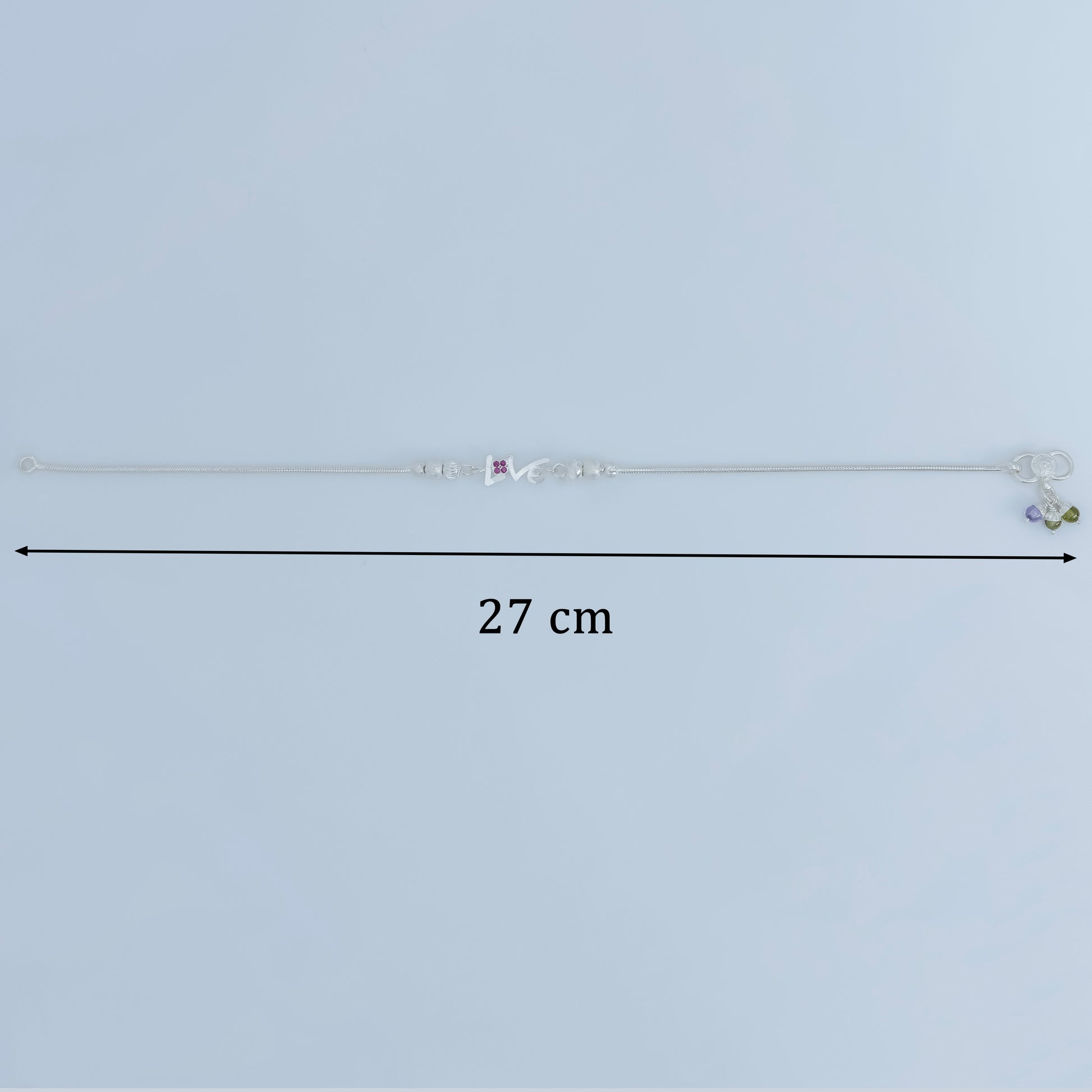 Introducing the Delicate Silver Love Anklet - the perfect accessory for daily style. This designer anklet boasts a lightweight design and features a delicate silver love charm that adds a touch of elegance to any outfit. Expertly crafted for comfort and style.