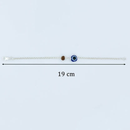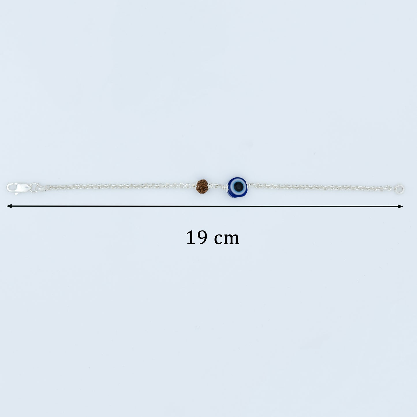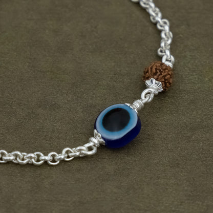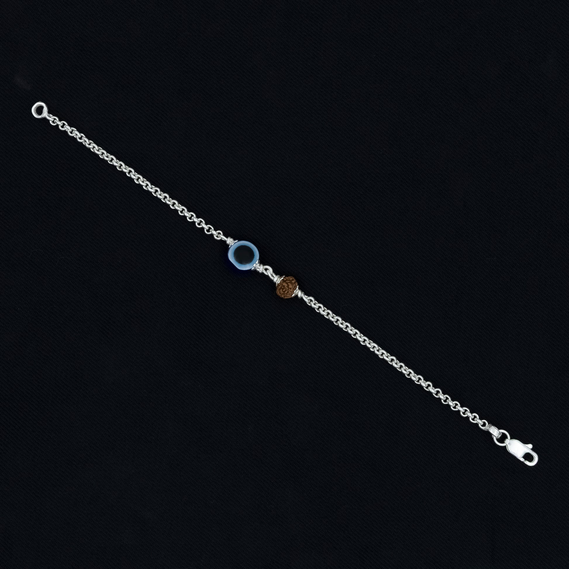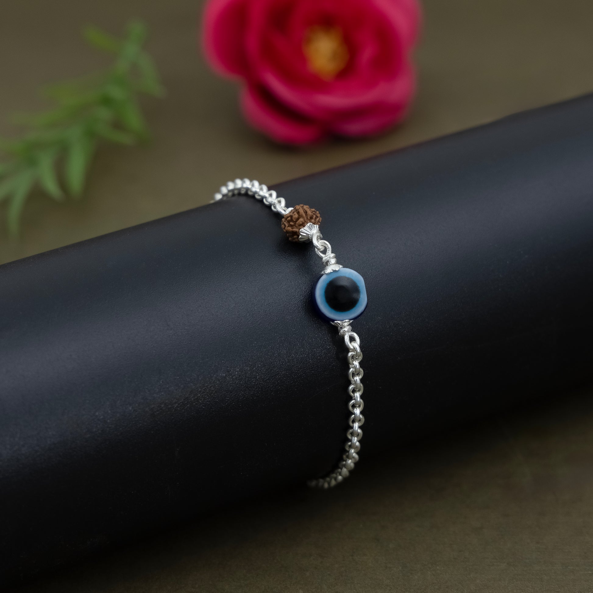 Elegant Evil Eye Charm Silver Bracelet Adorned with Rudraksha