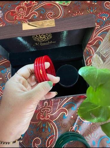 This is little, gold bangle that features the symbol of swastika design. The swastika in all probability is a small one but it is gold and hence affords the opportunity of much detailing because of its gold representation. The golden color of the bangle produces a bold contrast with the red bangle, so the piece attracts the attention of the one who is looking at it. However, the symbol of swastika has been abused as a racist sign of violence in the last century. It represented good fortune and prosperity in various cultures previously.