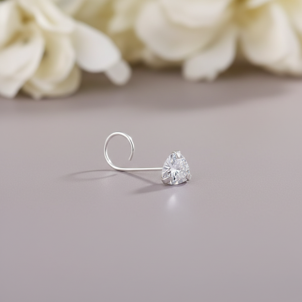 Heart-shaped diamond nose pins blend timeless elegance with contemporary style, making them an ideal choice for special occasions or everyday wear. This Valentine special features a precisely cut diamond in a classic heart silhouette, symbolizing love and sophistication. The secure nose stud design ensures comfortable, all-day wearability without slipping. Crafted with attention to detail, it complements both traditional and modern aesthetics. Perfect as a gift or personal indulgence, this piece elevates your jewellery collection with understated luxury and meaningful symbolism.