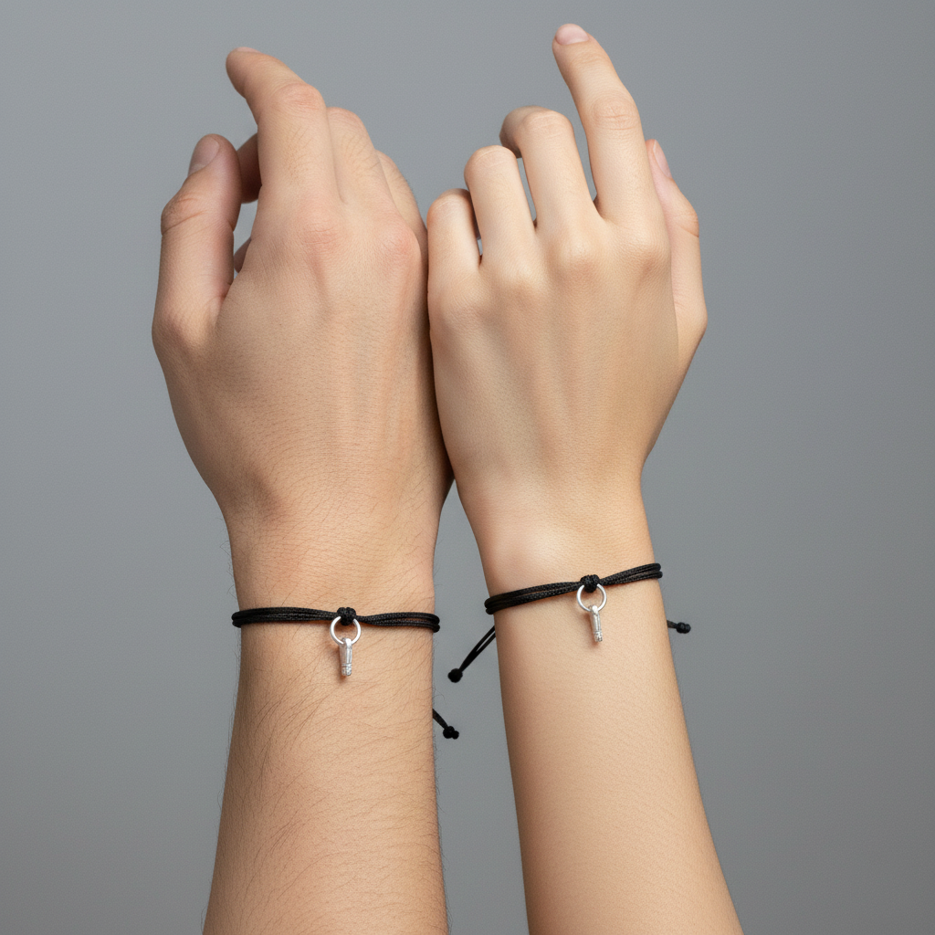 His & Hers Black Thread Premium Silver Knife(chaku) Charm Perfect Boy and Girl Combo Celebrate togetherness with this curated couple's set featuring matching premium silver chaku charms suspended on elegant black threads. Each piece showcases traditional craftsmanship with a contemporary aesthetic, making it an ideal gift for partners who appreciate symbolic jewellery. The knife charm carries cultural significance while the coordinated design ensures both pieces complement each other seamlessly. Durable construction and refined detailing make this combo a meaningful accessory for daily wear or special occasions.