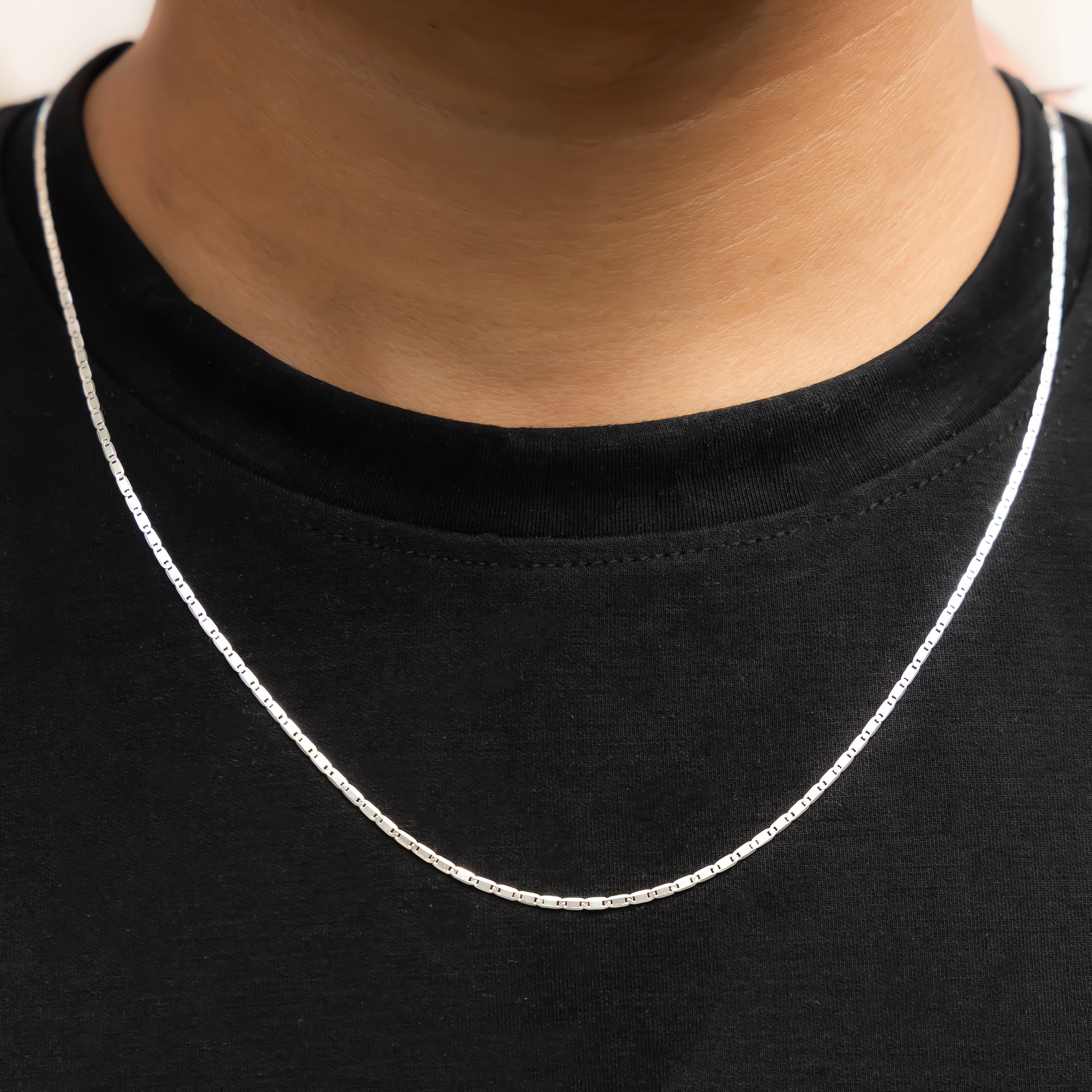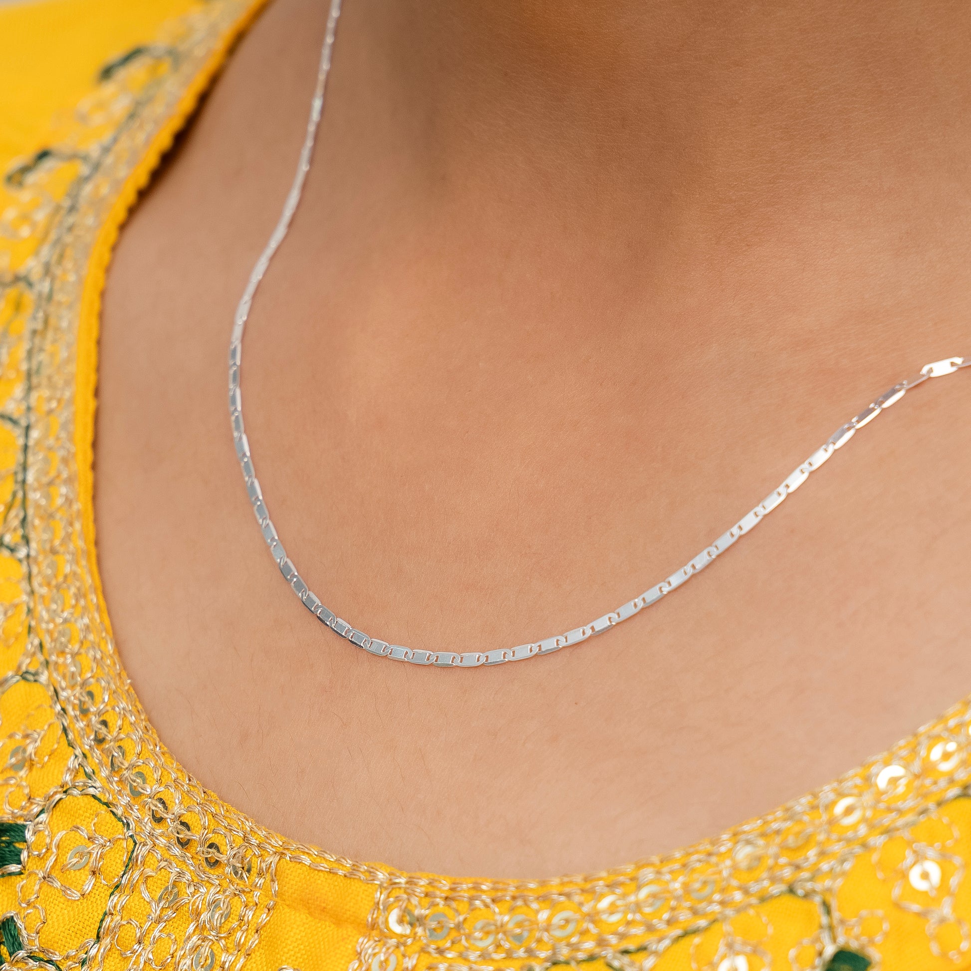 Crafted from high-quality sterling silver, this lightweight everyday chain offers durability without sacrificing comfort. Its sleek design makes it an ideal foundation for pendants or to wear solo for a subtle, refined look. Perfect for daily wear, it combines strength with elegance, maintaining its shine over time while ensuring ease of movement and all-day comfort.