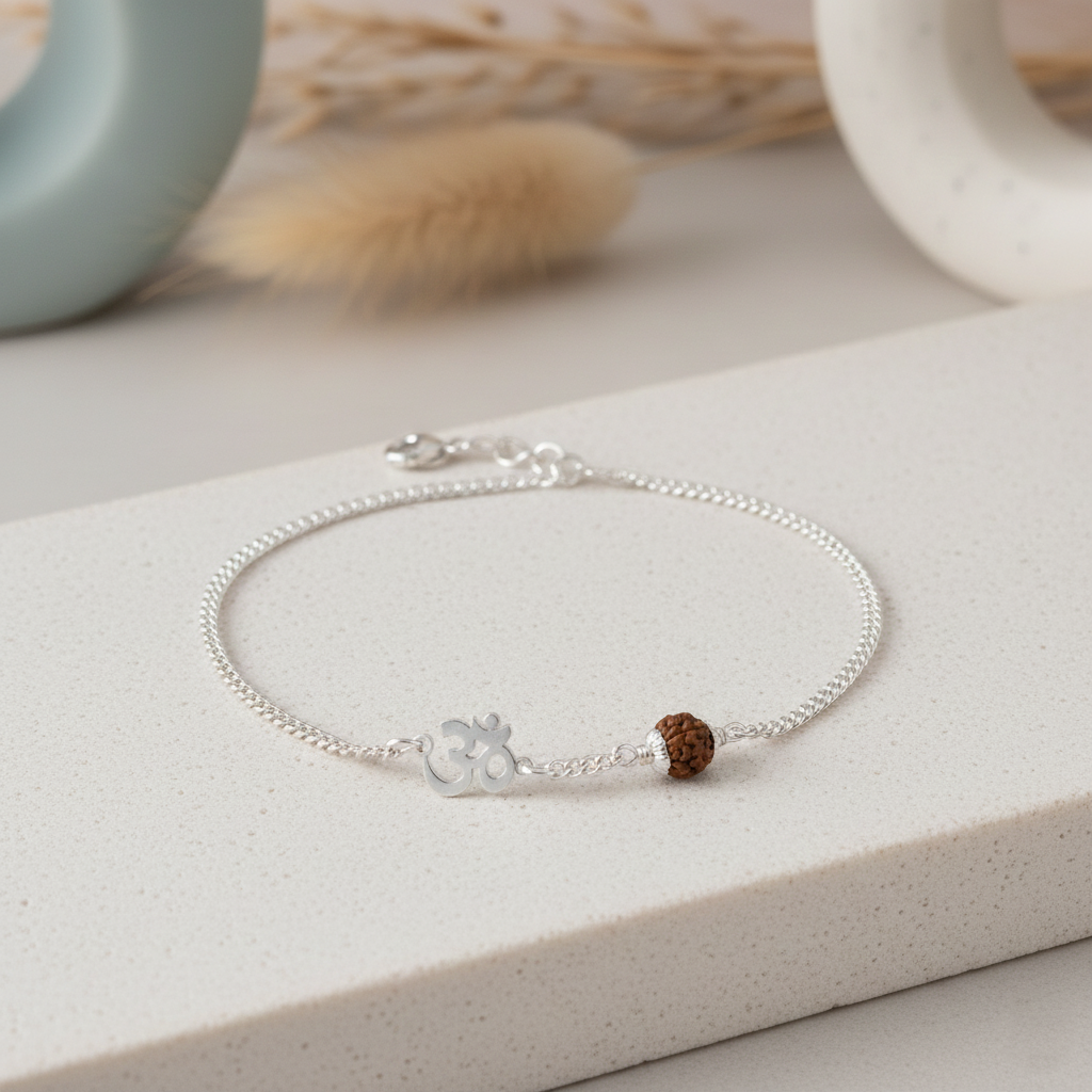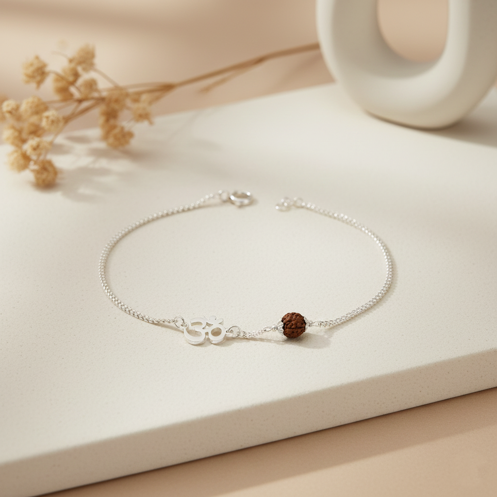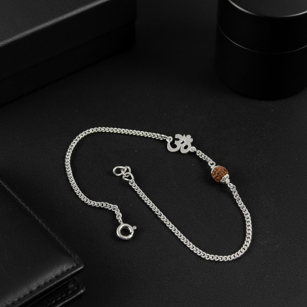 Elevate your spiritual journey with this Men’s Silver Rudraksha Bracelet featuring the sacred Om symbol. Crafted with genuine Rudraksha beads and durable silver accents, the bracelet is fully adjustable for a comfortable fit. It serves not only as a powerful spiritual accessory but also complements your daily attire with understated elegance. Ideal for meditation, mindfulness, and enhancing positive energy, this bracelet blends meaningful symbolism with expert craftsmanship.