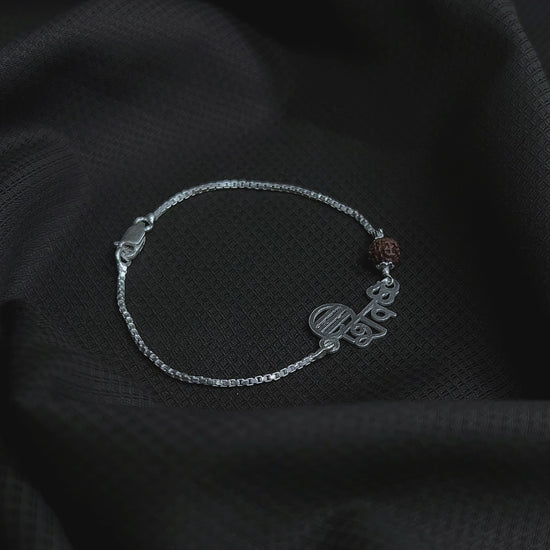(2 Pcs ₹2999) Men’s Silver Rudraksha Bracelet Om Symbol Adjustable
