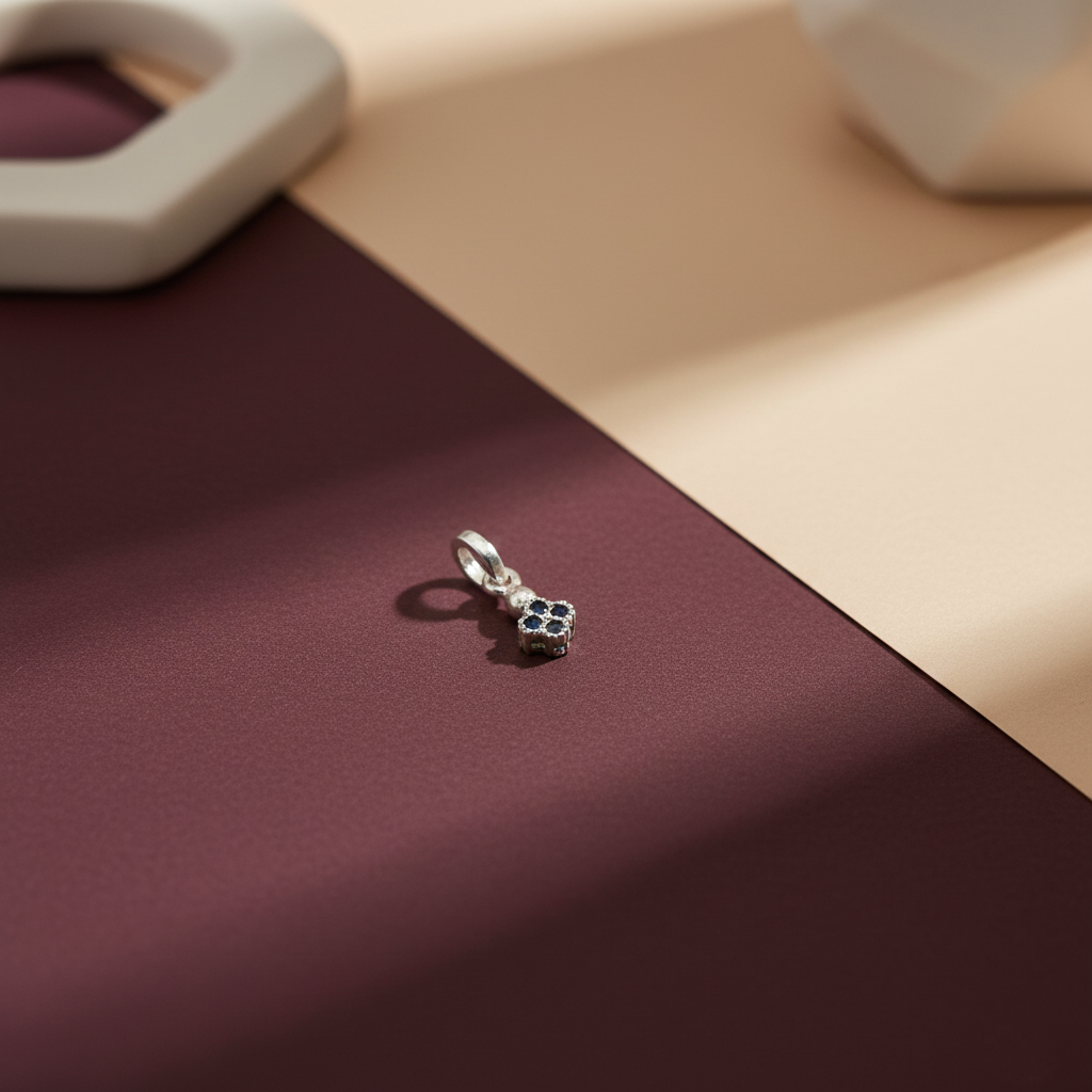 Mini Floral Silver Pendant Delicate craftsmanship meets timeless elegance in this sterling silver pendant. The intricate floral motif captures botanical beauty in miniature form, making it versatile enough for everyday wear or layered styling. Lightweight yet substantial, this piece complements both casual and formal ensembles. The refined design showcases quality silverwork with a polished finish that catches light beautifully. Perfect as a standalone statement or paired with your favourite chain, this pendant brings understated sophistication to any jewellery collection.