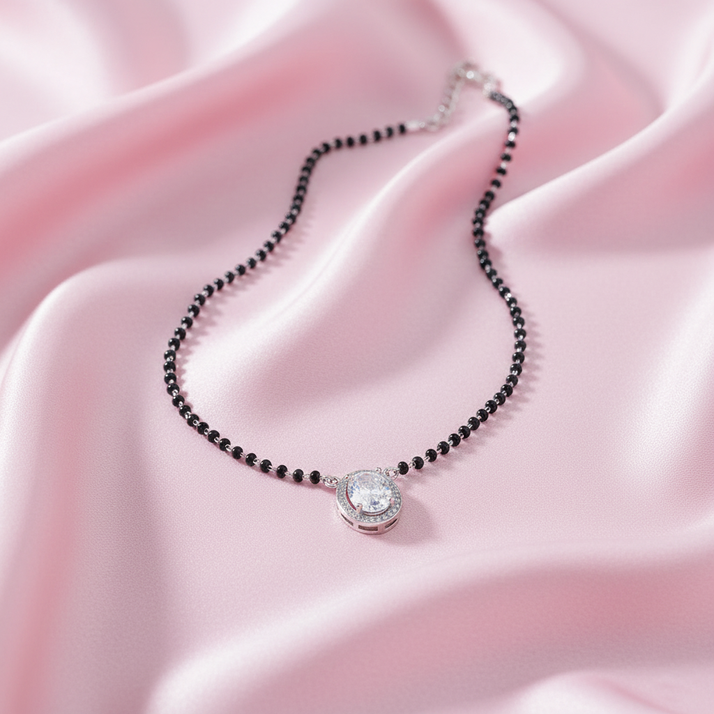Modern Black Beads Mangalsutra with Oval Shape Stone Pendant