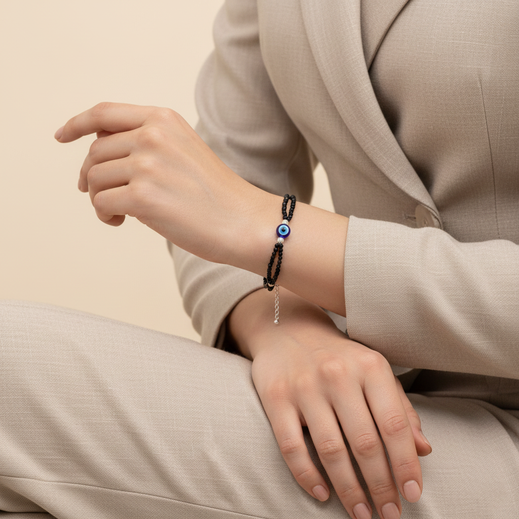 Nazar Suraksha (Evil Eye) Black Bead Bracelet