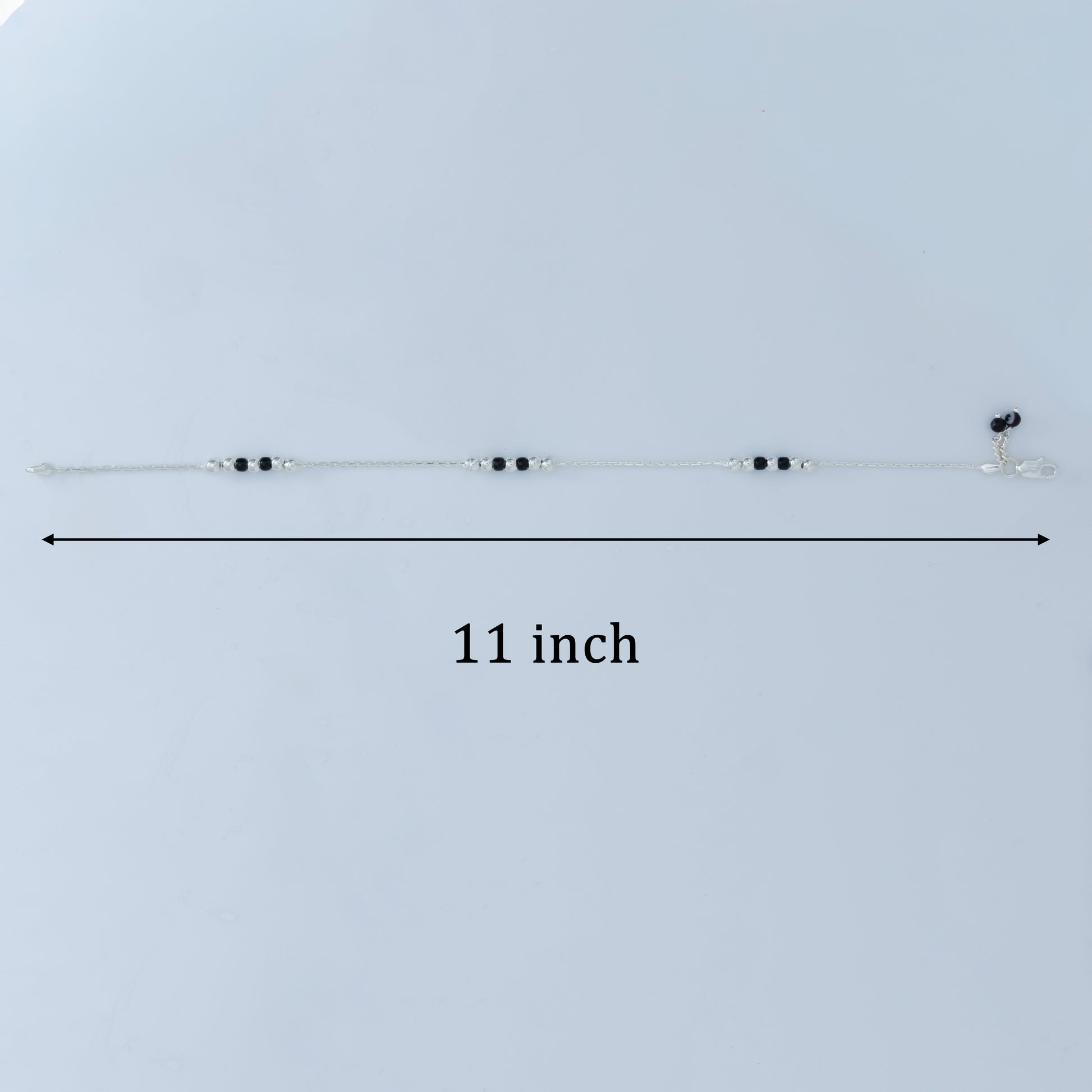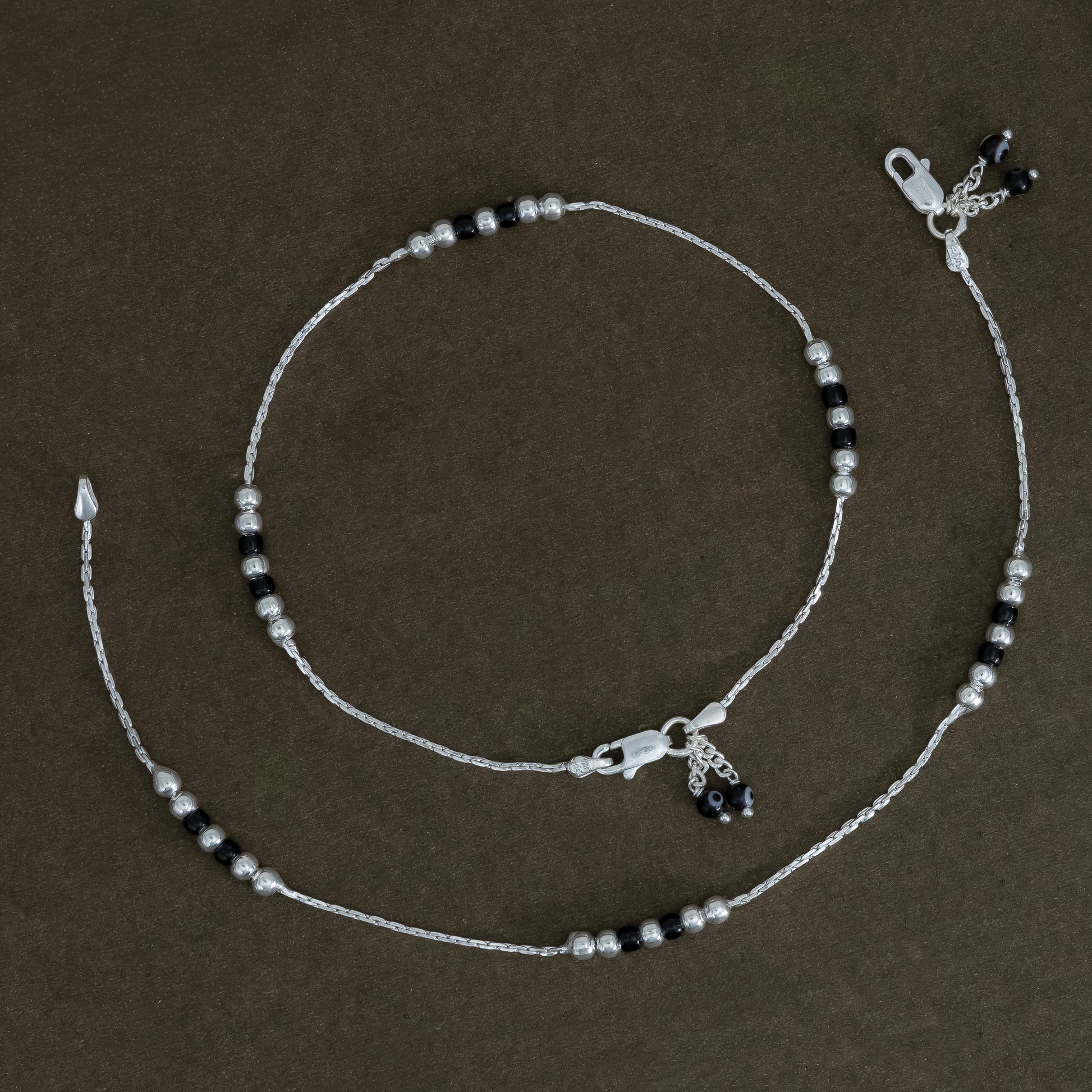Elevate your ankle jewellery with this sophisticated Noir Bead Silver Anklet, where lustrous silver meets the striking contrast of polished black beads. Each bead is carefully selected to create a refined aesthetic that transitions seamlessly from casual daywear to evening occasions. The silver setting provides durability and a timeless appeal, while the black beads add contemporary edge and visual depth. Perfect for layering or wearing solo, this anklet delivers understated luxury with a modern sensibility. An essential piece for those who appreciate jewellery that balances classic elegance with bold design.