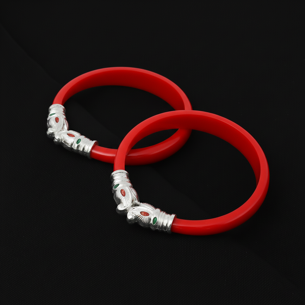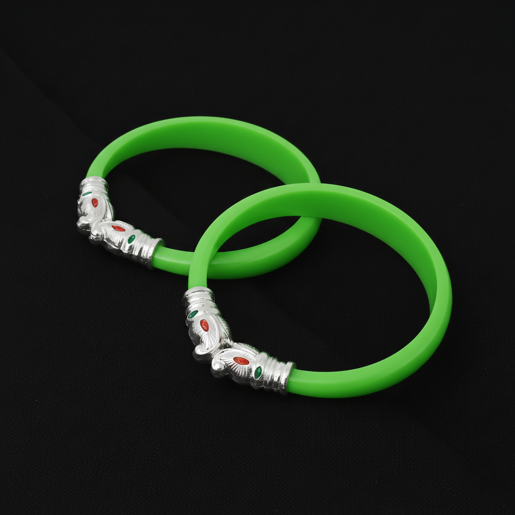 Premium Gajmukh Silver Bangles Multi-Color Edition