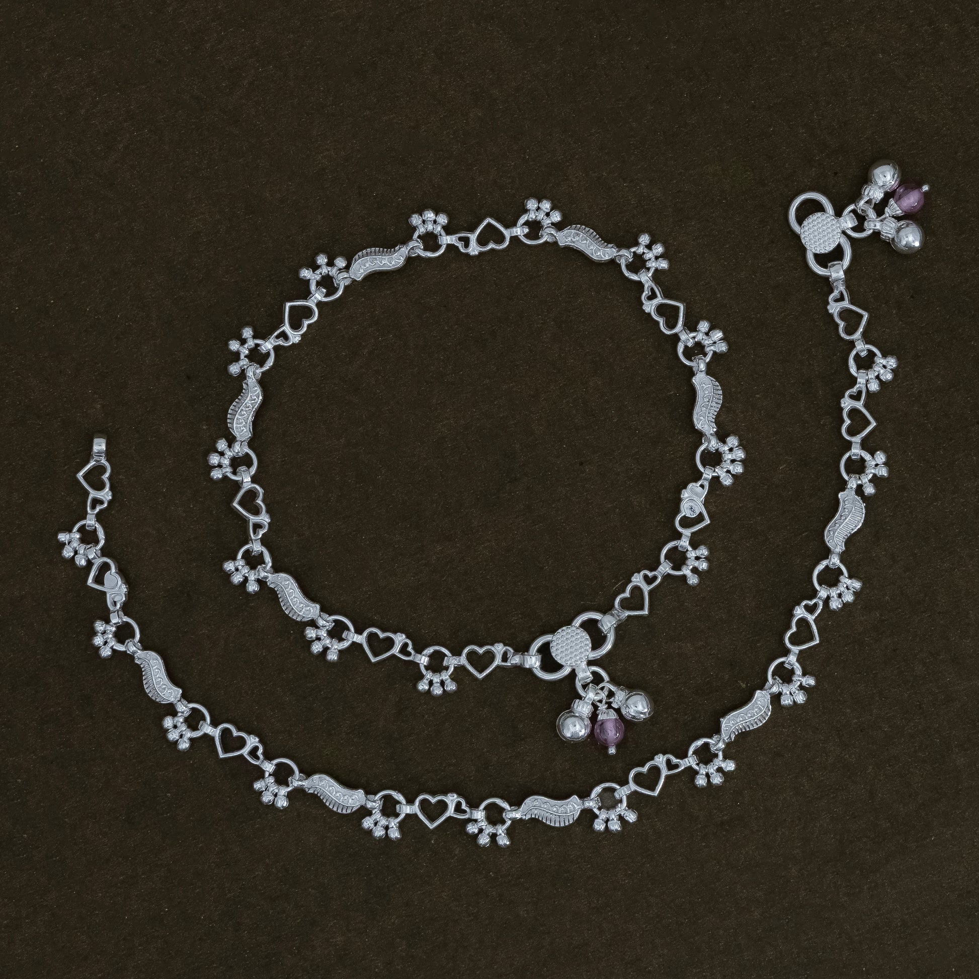 Premium Heart Pattern Silver Payal Symbol of Love & Grace