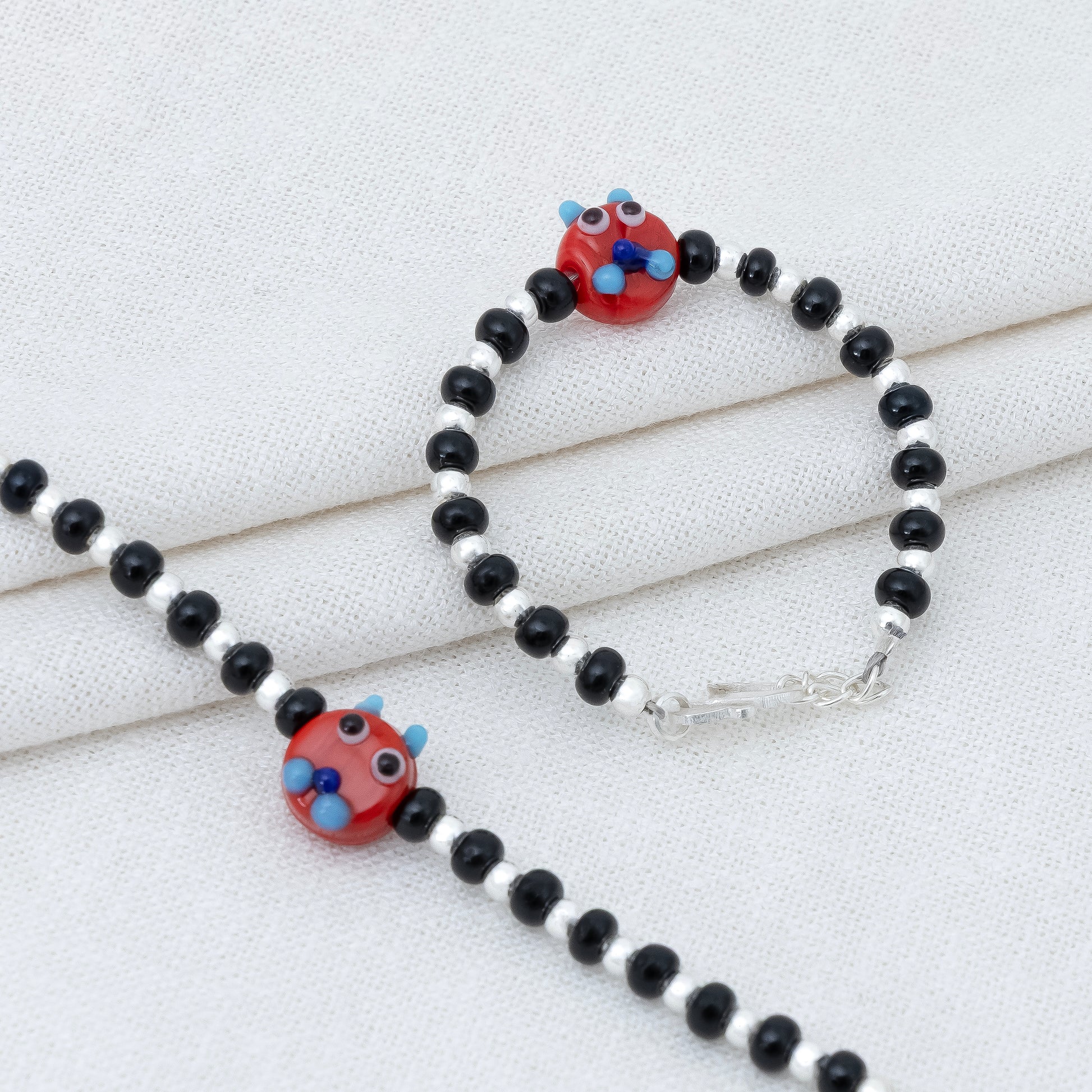 Red Playful Silver & Black Beaded baby Bracelet