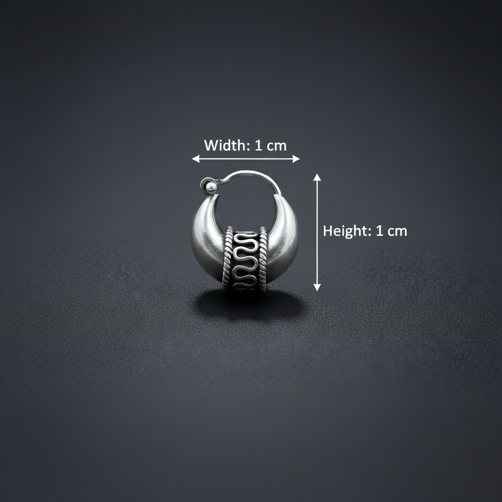 Royal Oxidized Silver Boy's Bali Crafted from oxidized silver, this boy's bali showcases traditional artisanal detailing with a contemporary edge. The darkened patina creates striking contrast and depth, enhancing the intricate design work characteristic of authentic Balinese craftsmanship. Lightweight yet substantial, it's designed for everyday wear while maintaining its premium aesthetic. Perfect for young men seeking distinctive jewellery that bridges heritage and modern style.