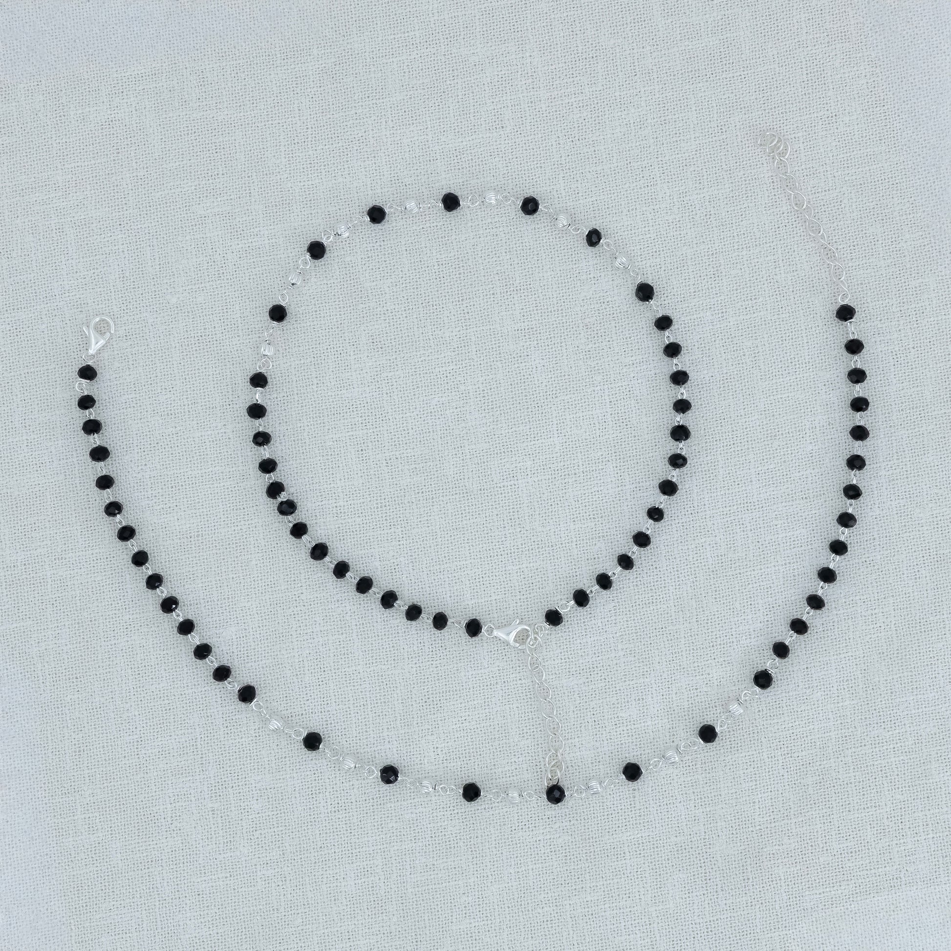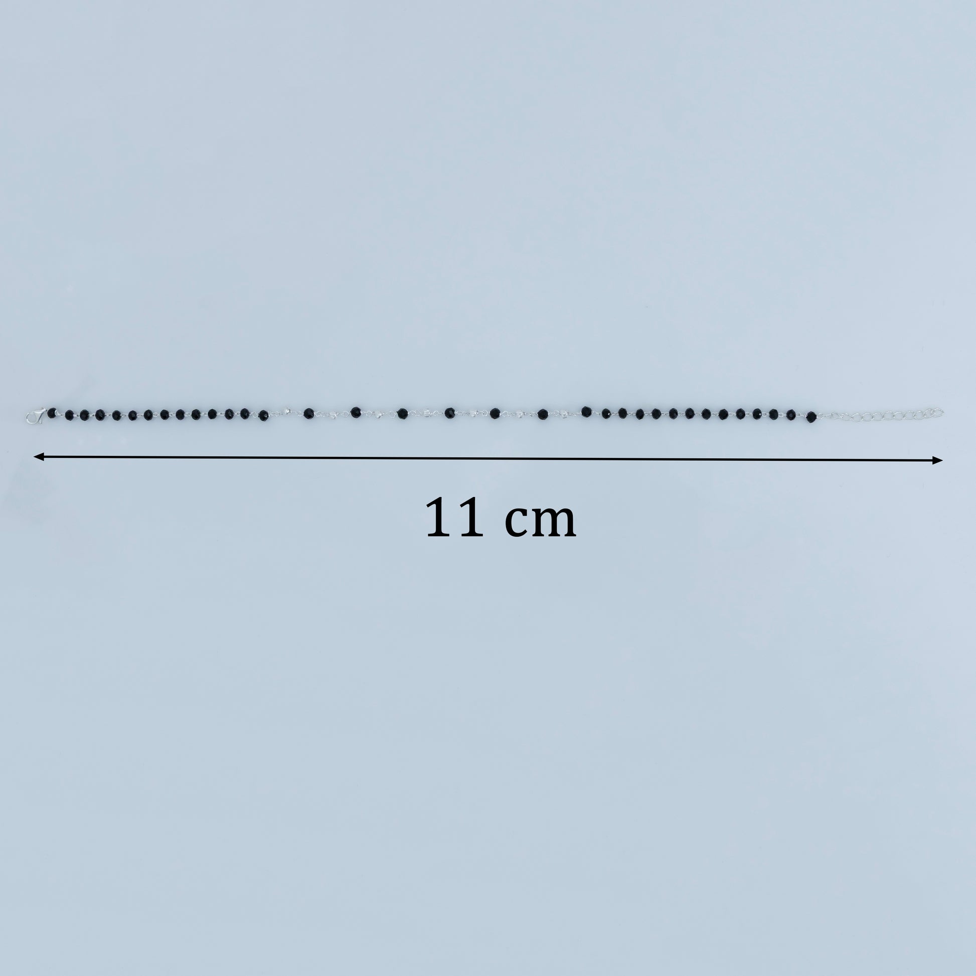 This Silver Anklet with Black Beads embodies traditional elegance, expertly crafted to enhance your cultural attire. The fine silver links are adorned with carefully placed black beads, adding subtle contrast and depth. Durable yet lightweight, it offers comfortable wear for daily use or special occasions, reflecting craftsmanship that honors timeless design. Ideal for those seeking authentic ethnic jewellery with lasting quality.