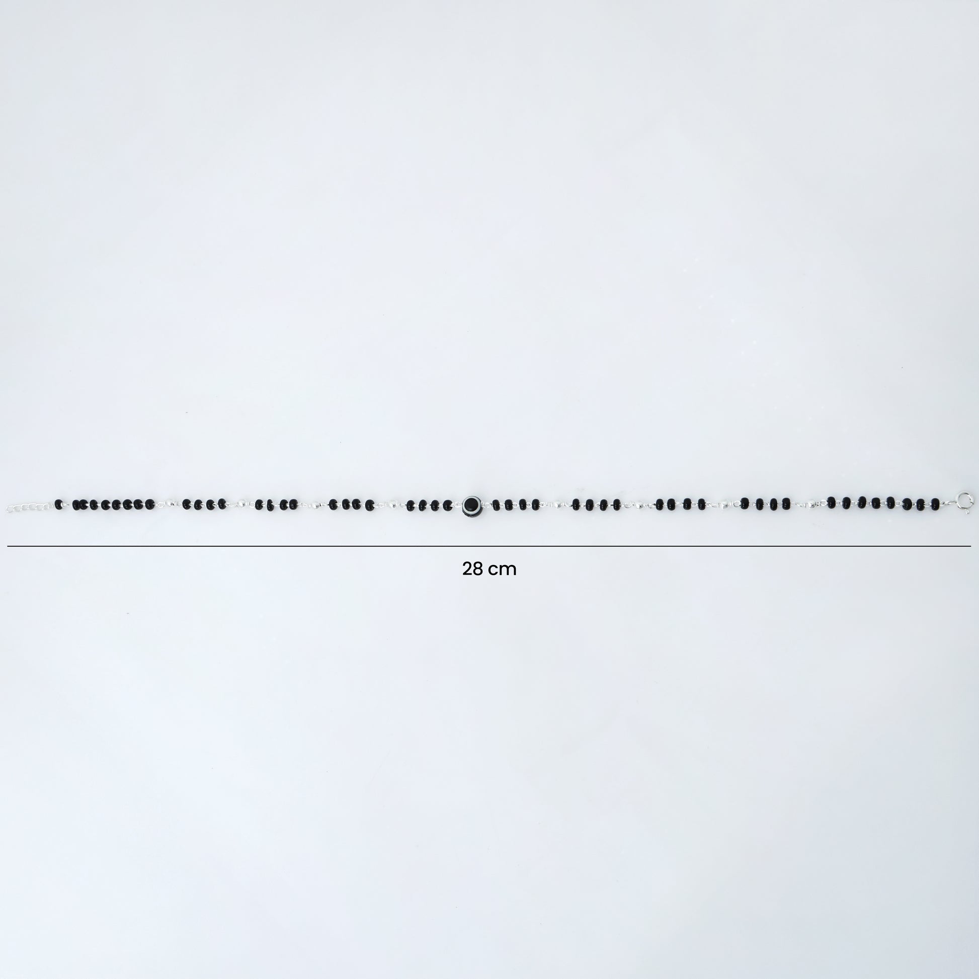 Silver Black Evil Eye with Black and Silver Beads Payal