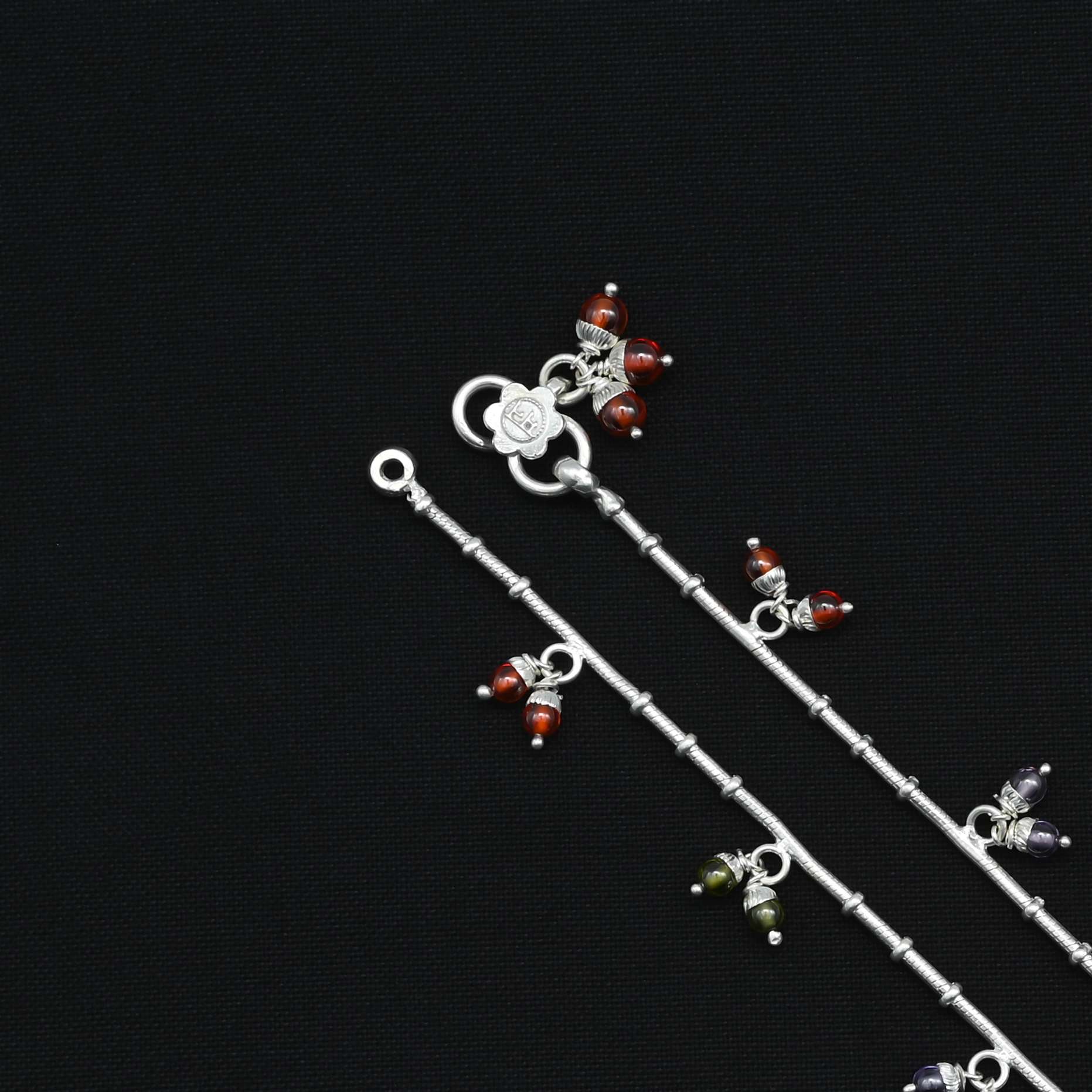 Silver Classic "Majestic Dilemma" Purple & Orange Beads Payal for Her