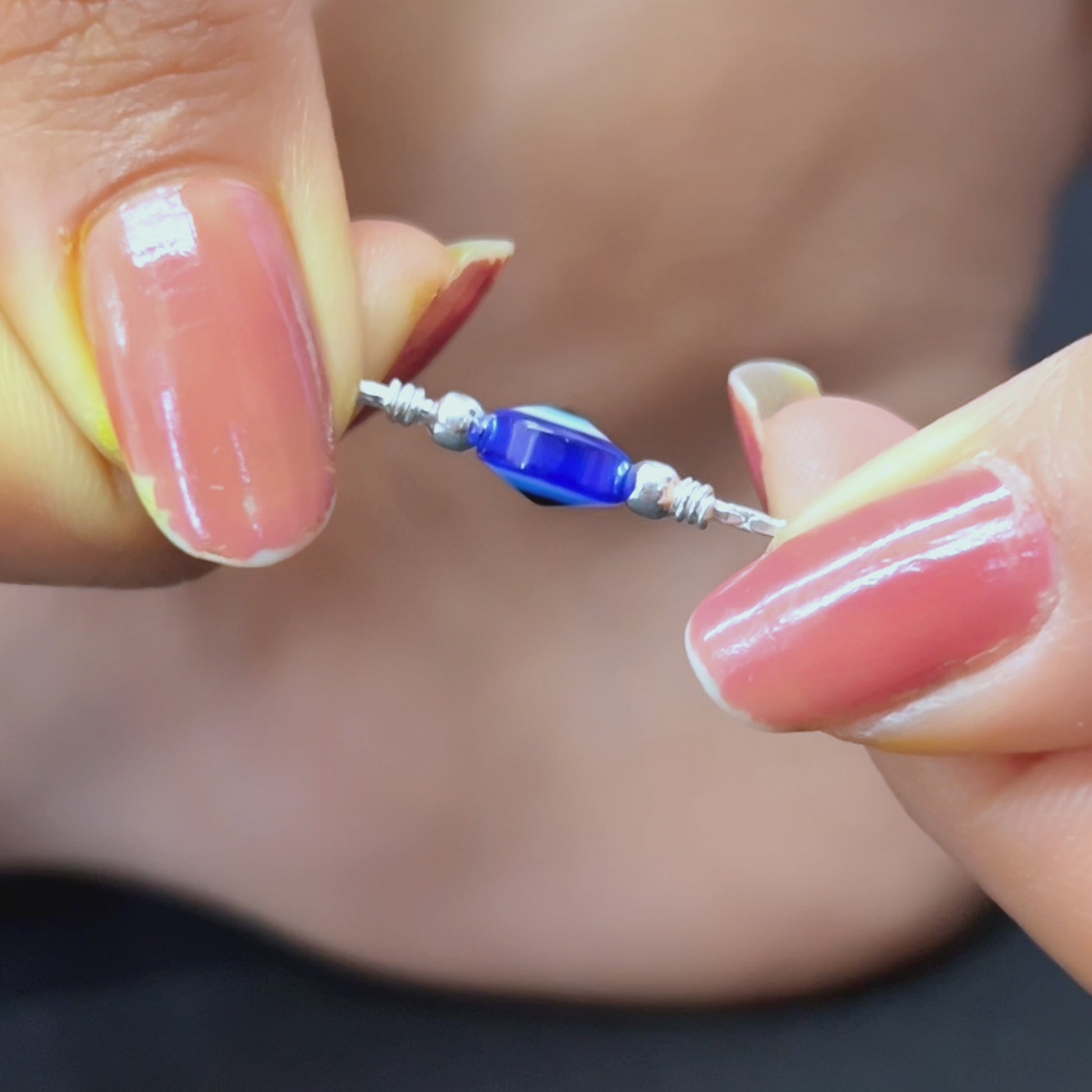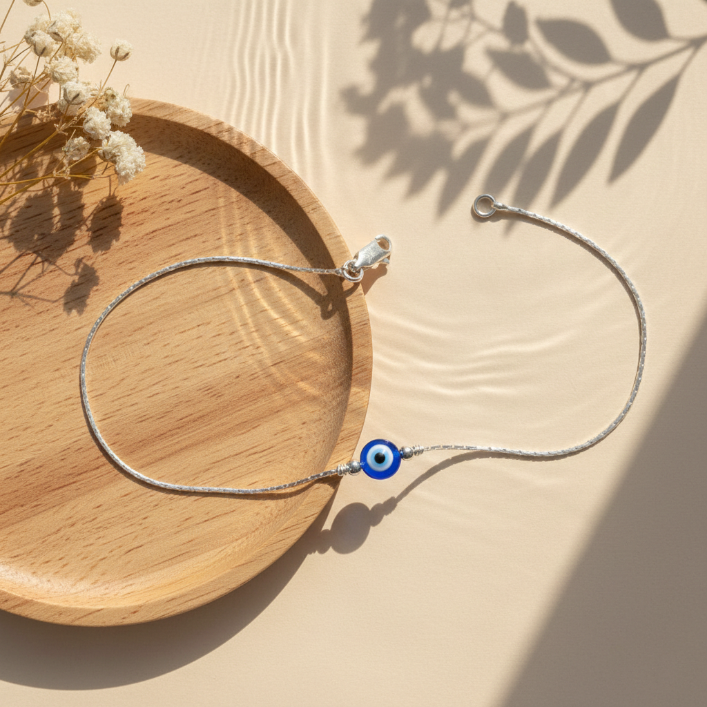 Silver Evil Eye Blue Bead Minimal Anklet for Women & Girls