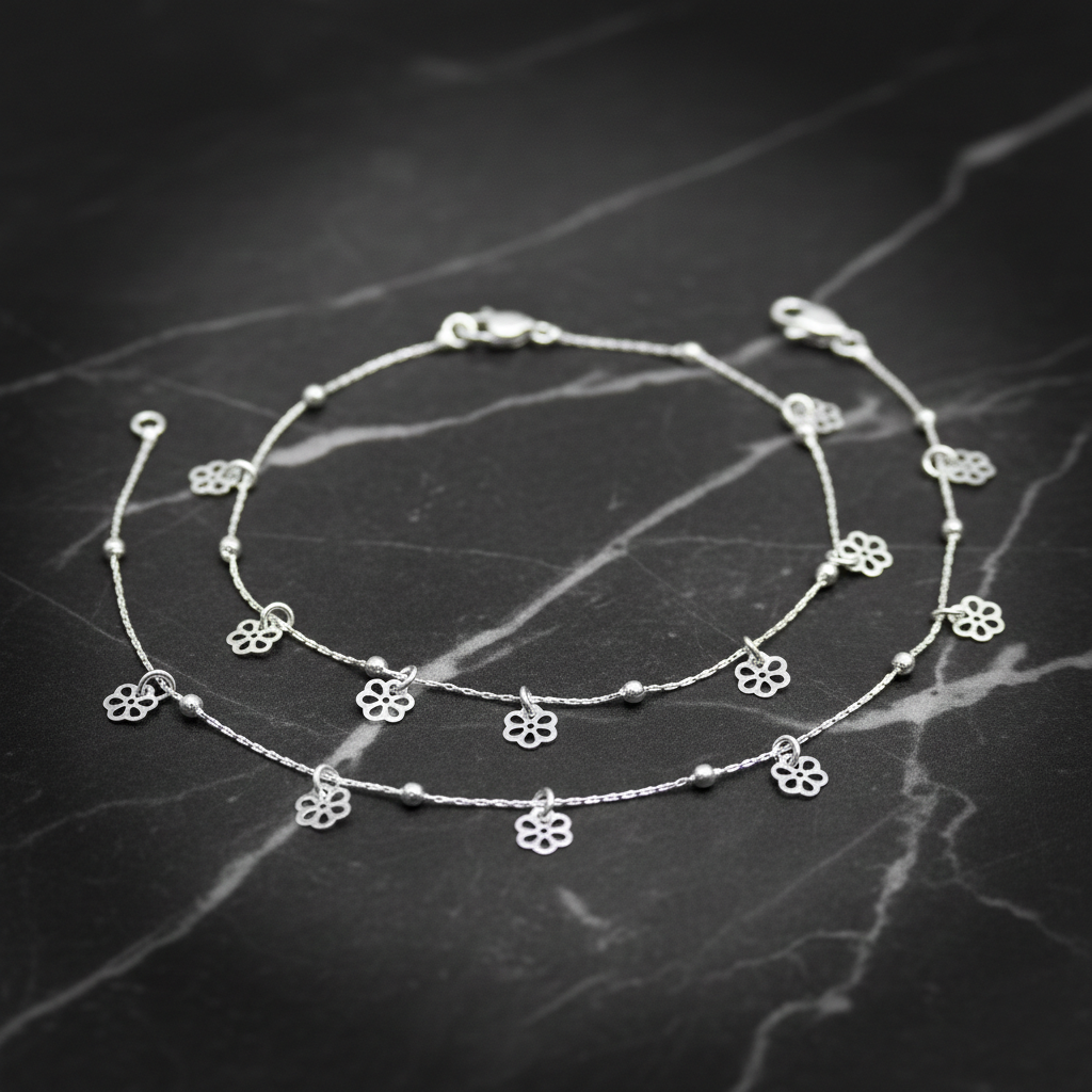 Silver Floral Charm Anklet Delicate Payal/Anklet for Women